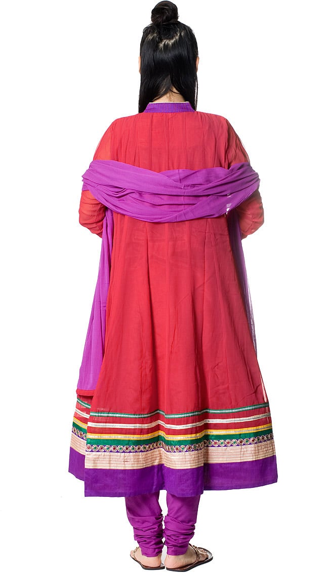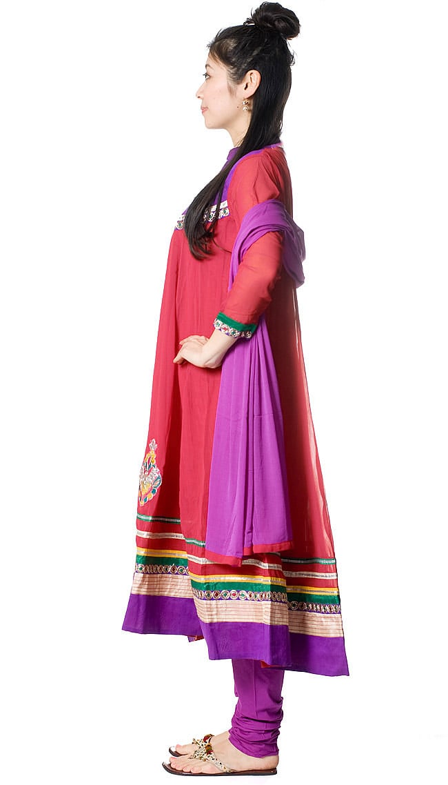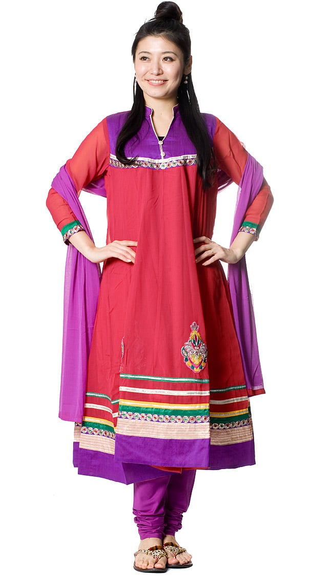 パンジャビ・ドレス3点セット - 赤×パープルの類似商品