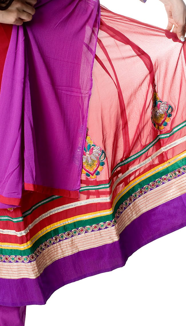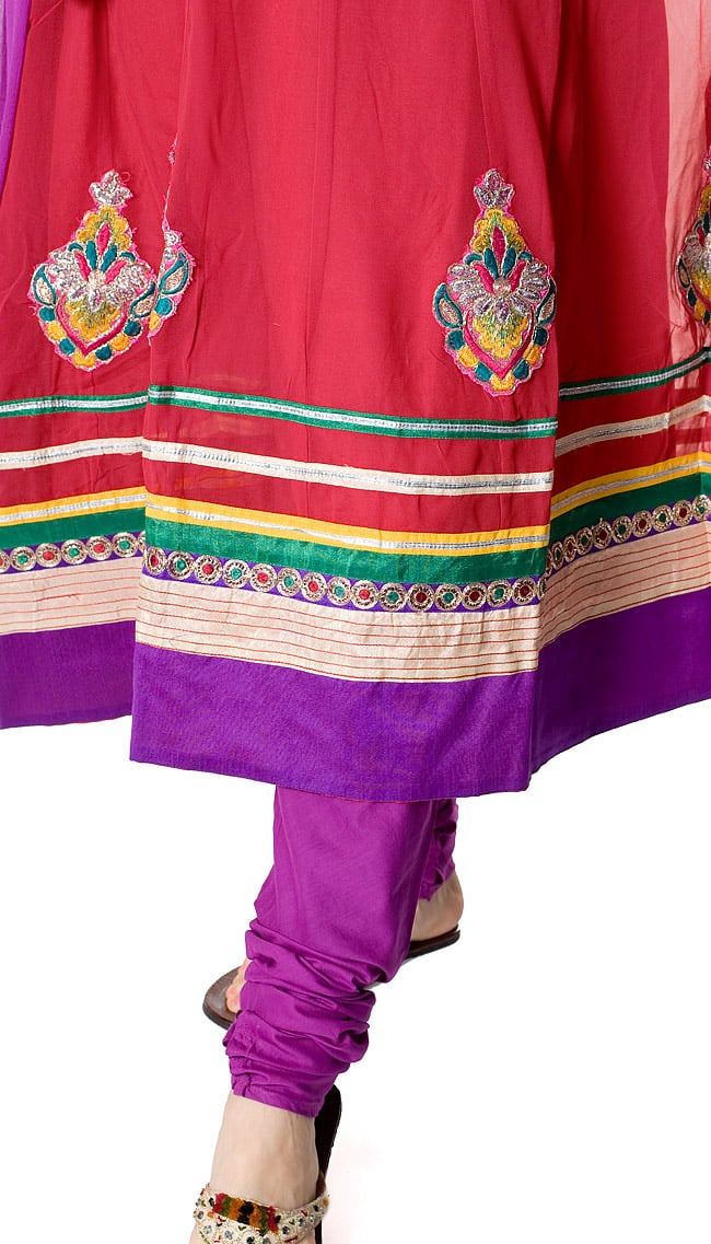 パンジャビ・ドレス3点セット - 赤×パープルの評価 (合計:1件)