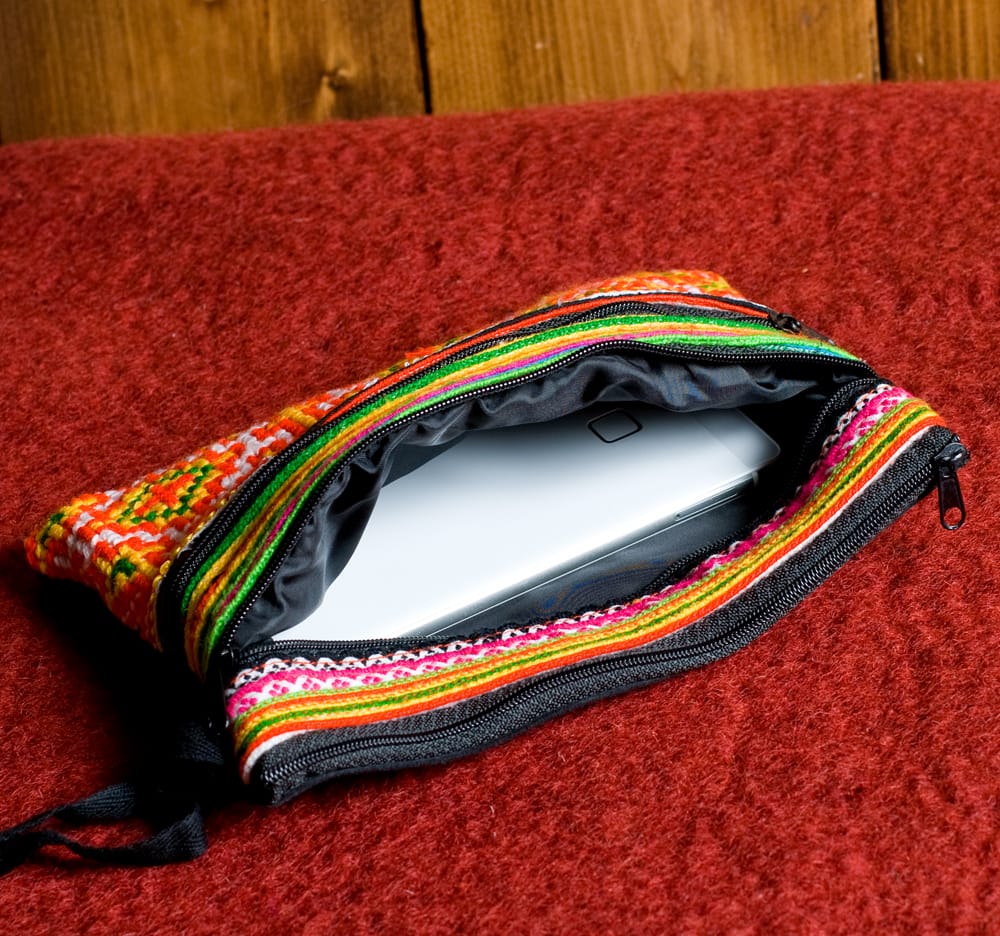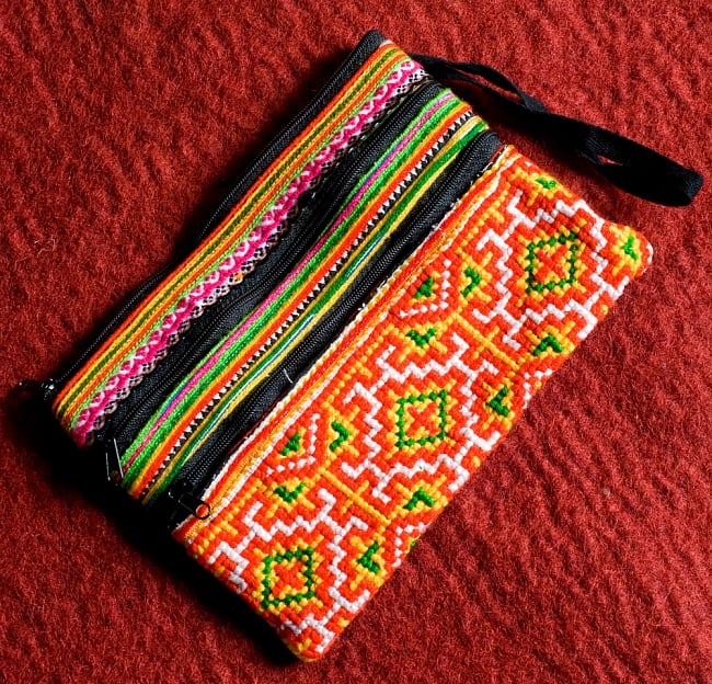 モン族刺繍の三連ジッパーサブバッグ -たて約15cm x 約よこ25cm 【アソート】の同一カテゴリ商品
