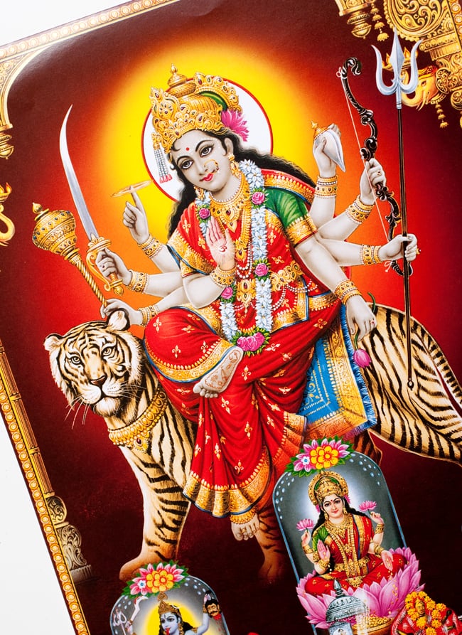 〔約37cm×約26cm〕インドのヒンドゥー神様ポスター - ドゥルガー 勝利の女神 通販店