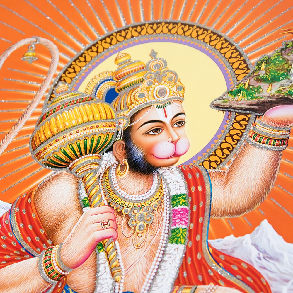 〔約40.5cm×約30.5cm〕輝くラメ入り・インドのヒンドゥー神様ポスター - ハヌマーン 猿族の王子様 通販店