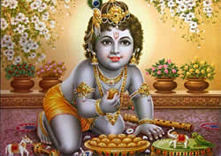 その幼くかわいい姿は多くのインド人の心をつかんでいます。ベイビークリシュナは、笛を吹いている姿や蜂蜜をなめる愛くるしい姿で描かれます。
