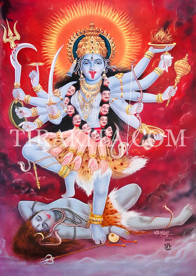 シヴァの妻・パールバティーの化身のひとつと言われるカーリー女神。血を好むと言われていますが……下に踏まれているシヴァが心地よさそうなのがなんとも。