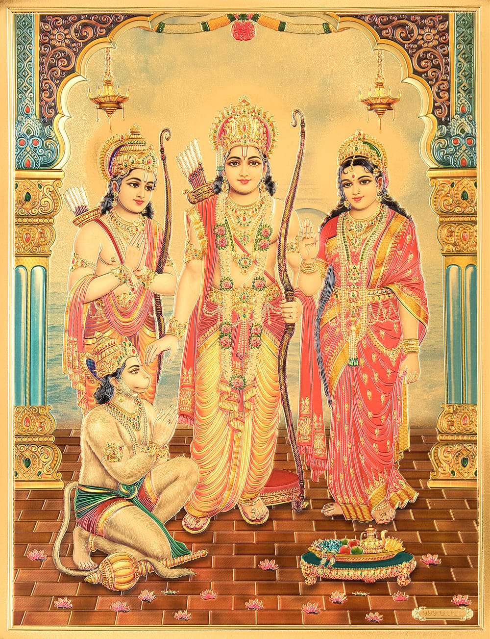 〔約40cm×約30cm〕インドのヒンドゥー神様ゴールドポスター - ラーマヤナ 通販店