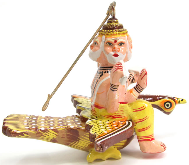 インド人が一つ一つ心をを込めて作ったかわいい神様像です。軽い木を丁寧にカービングし、カラフルにペイント。その上からニスを丁寧に塗りこんで仕上げました。
