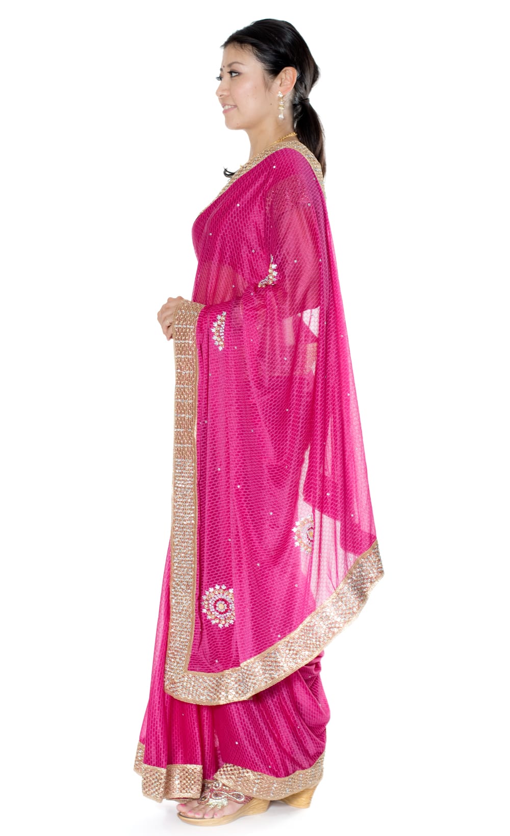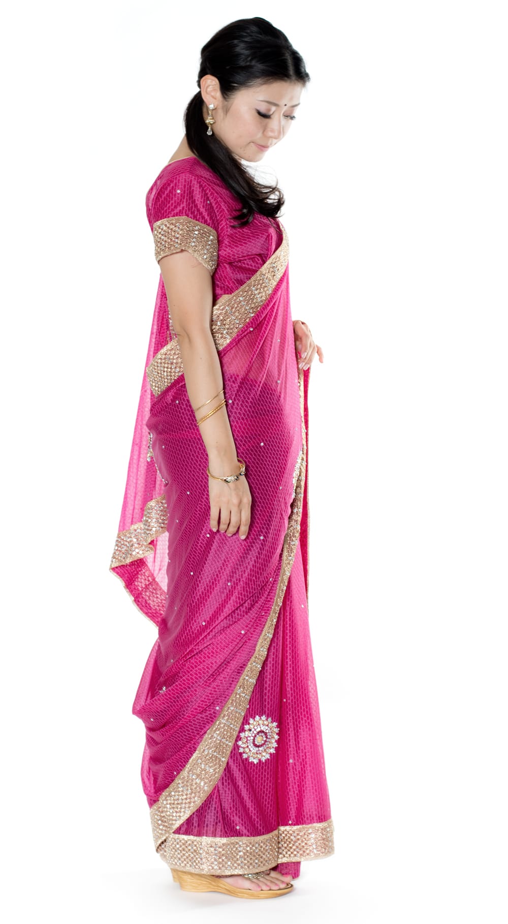 金糸とビーズ刺繍 レンガ模様のマハラニインドサリー【チョリ付き】 - マゼンダ 通販店