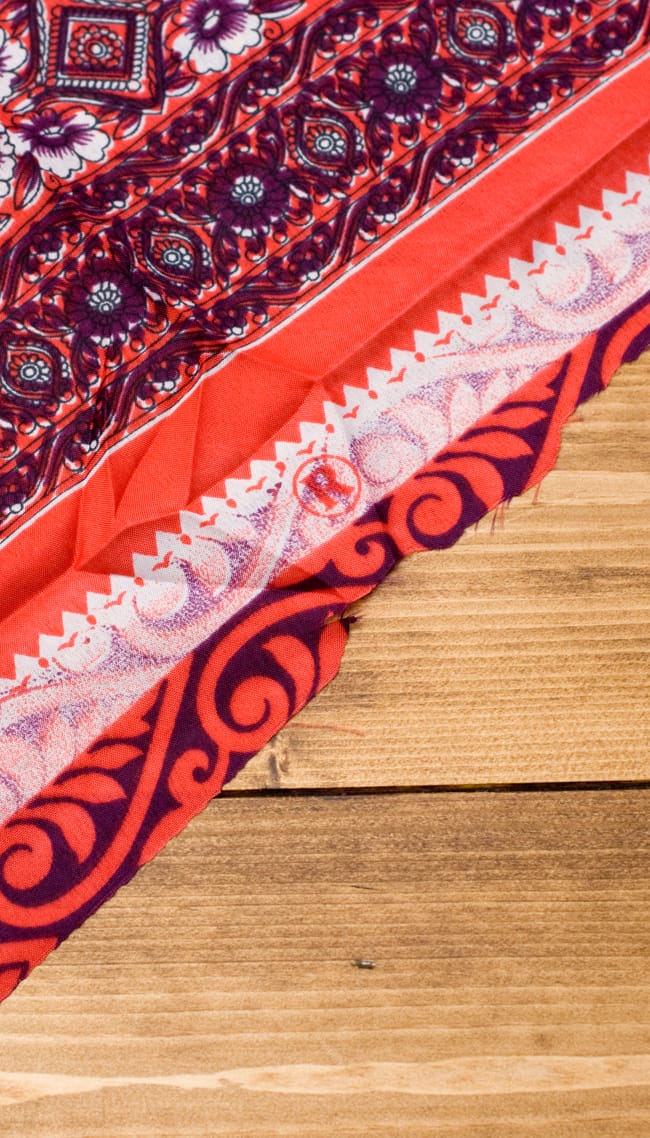インドサリー【花・ペイズリー】 全4色の商品写真 13枚目 端部分は切りっぱなしの状態となります。気になる方はご自身で切りそろえていただくか、塗ってご活用下さい。