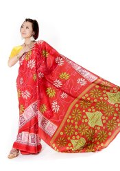 こちらのサリーは薄く透けるやわらかな肌心地の生地がしっとりと体を包み込んでくれる色鮮やかな一品です。