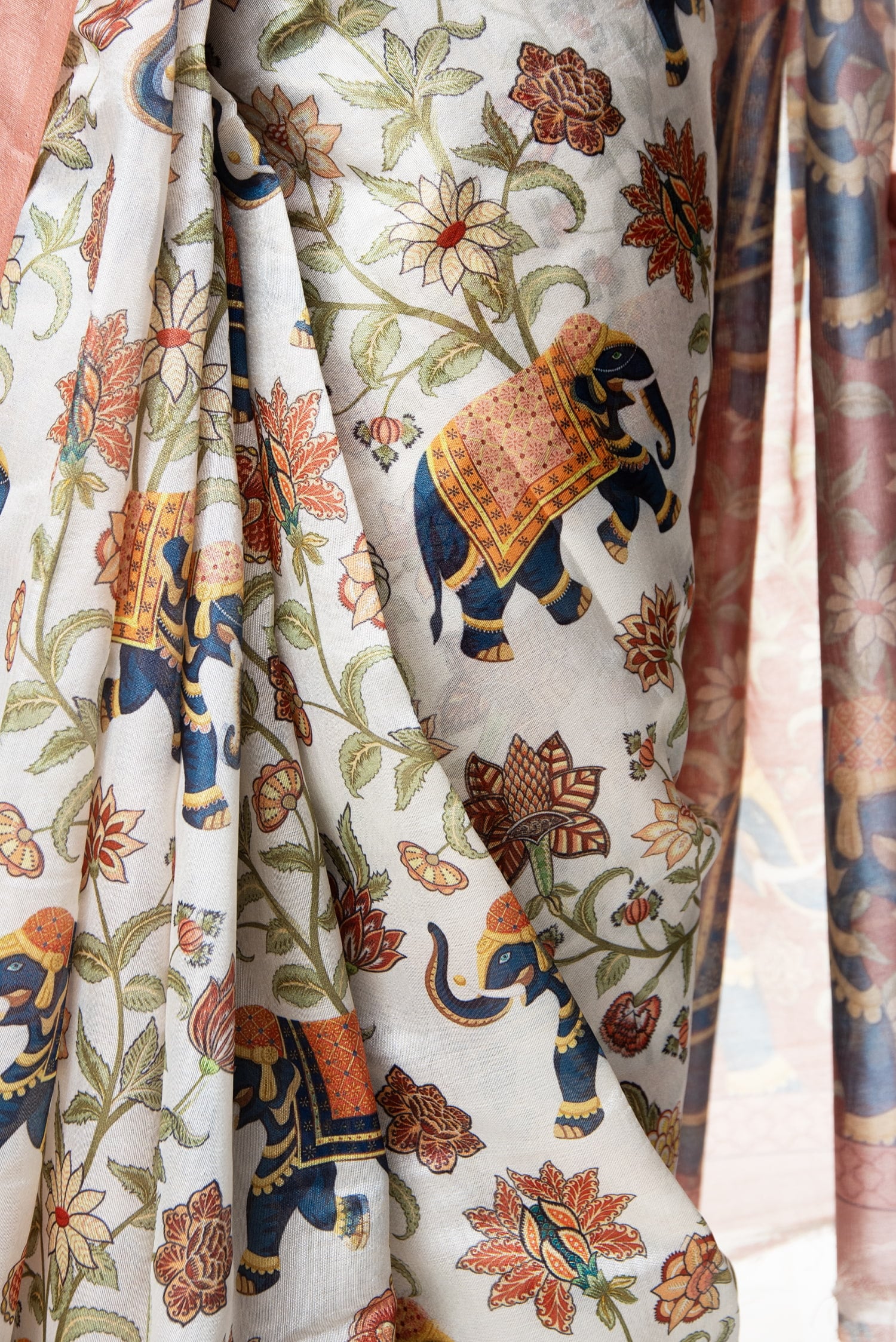 キーワード:サリー 民族衣装 デコレーション布 インド 布 更紗 生地 ファブリック デザイナーズサリー インドサリー saree 木版柄 アニマル ボタニカル フローラル 草花 動物 ムガル ミニアチュール
