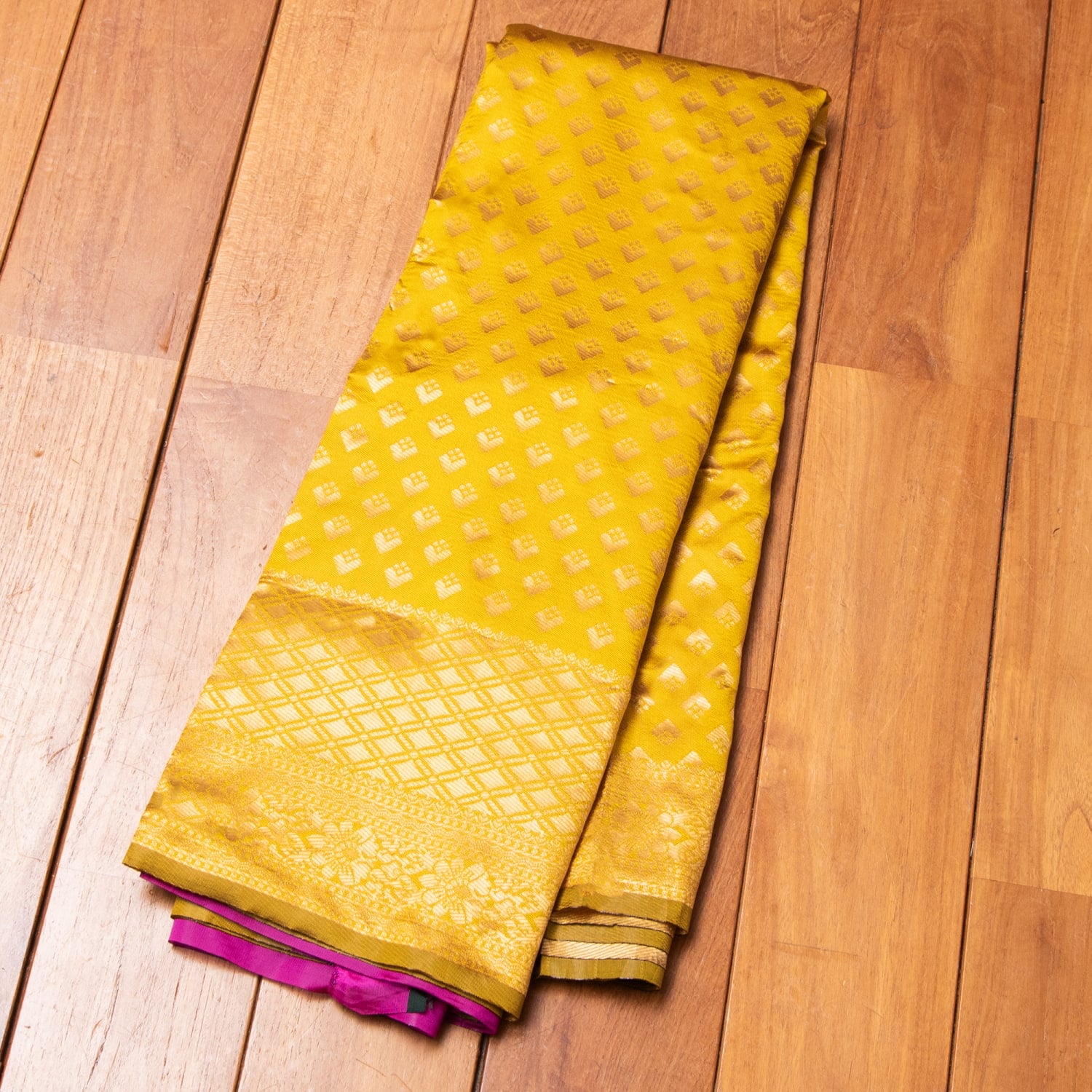 無事に商品が届き、先日サリーを着ることができとても満足しています。普段着用の生地とのことだったので特に期待はしていませんでしたが、タイシルク100%の表示がありとてもしなやかできれいなドレープを作ることができ素敵に着ることができました。