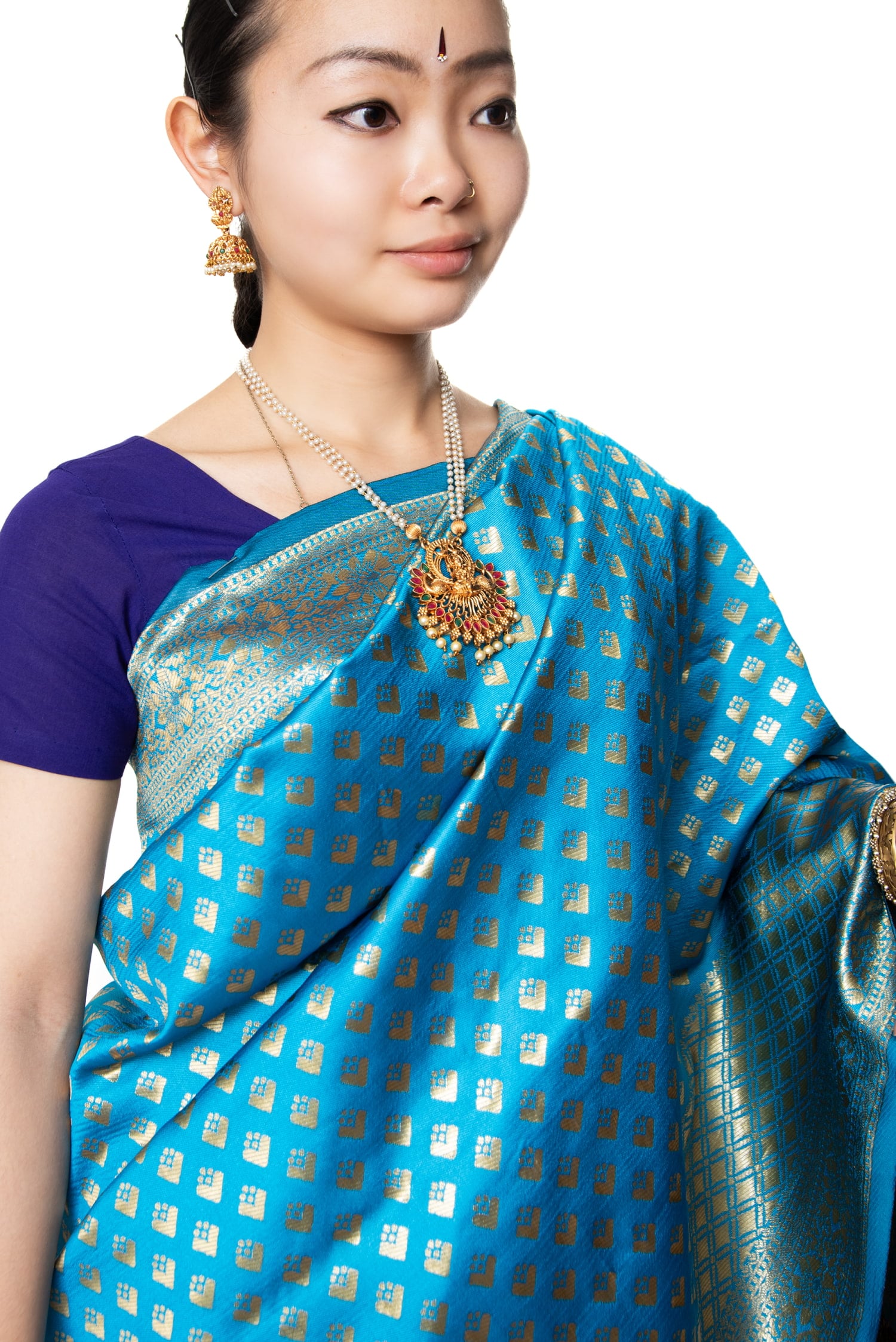 ずっと、明るいブルー(ターコイズか水色)のサリーを探していました。