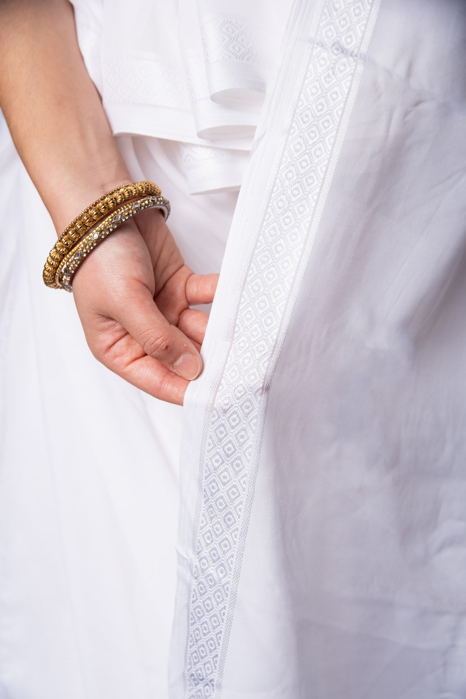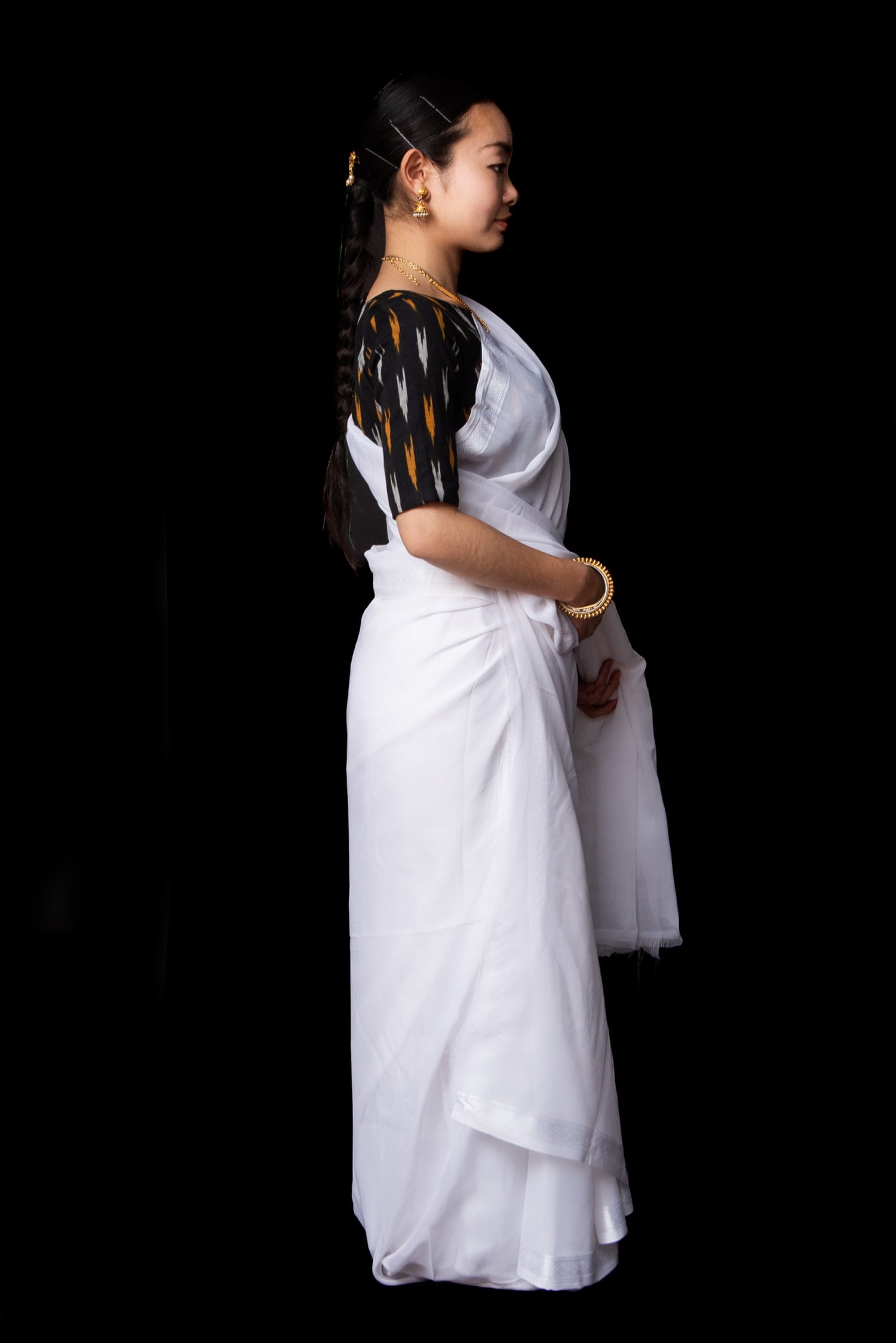 ケララの白いサリー ケララカサヴ クラシカル シンプル