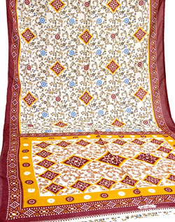 木版更紗調 伝統柄のプリントサリー