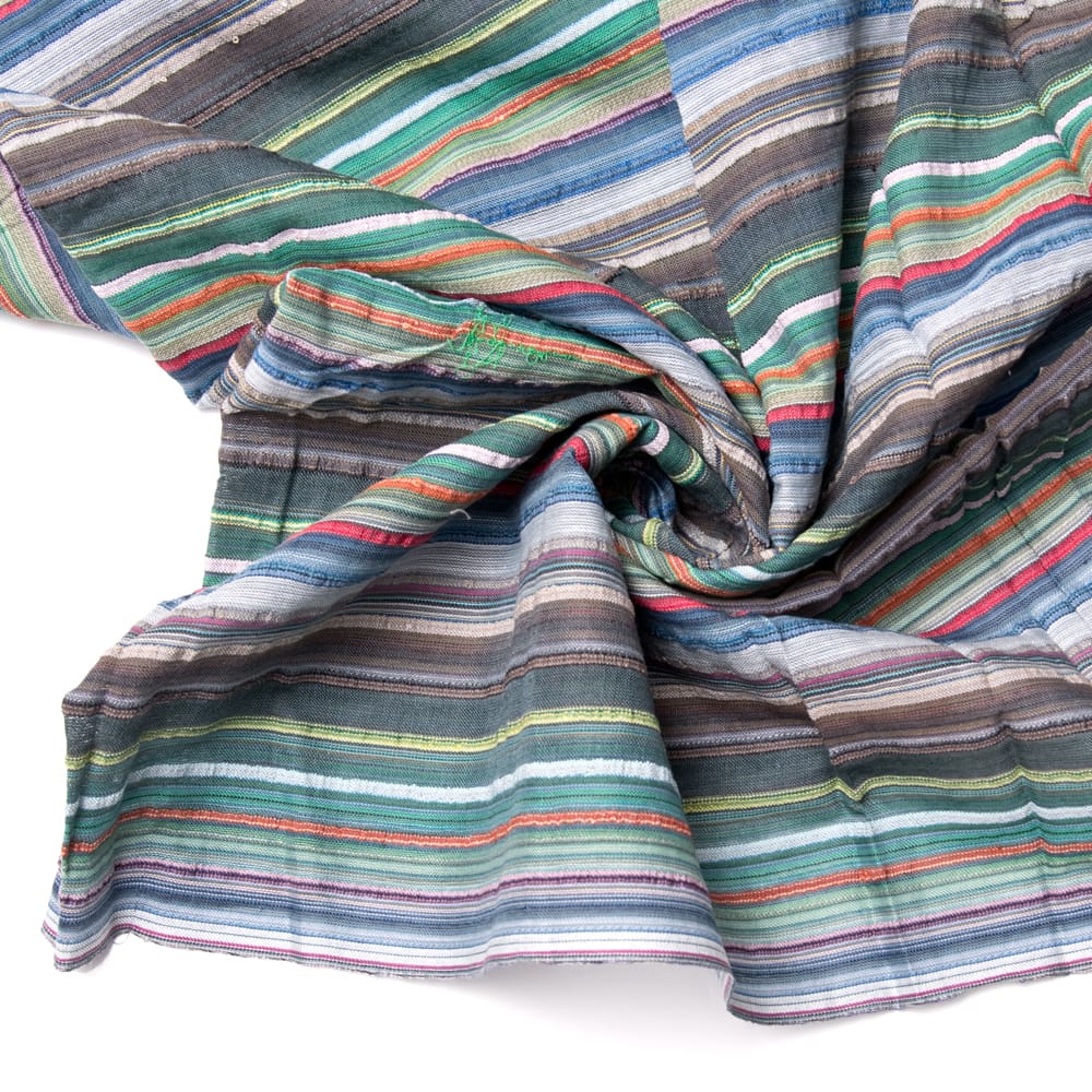 インドの伝統布 ボーダー柄のルンギー用コットン布 〔幅110cm 1メートル切り売り〕グリーンの類似商品