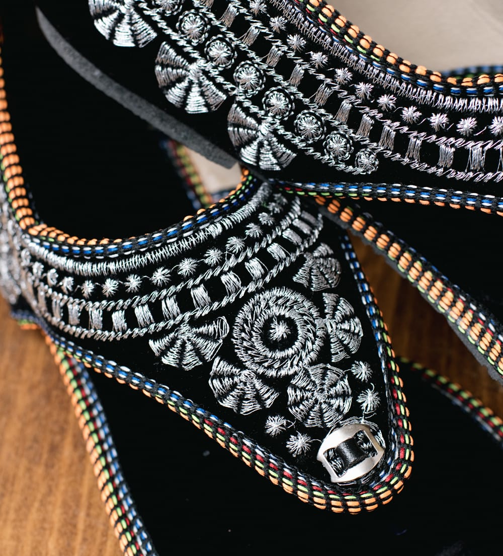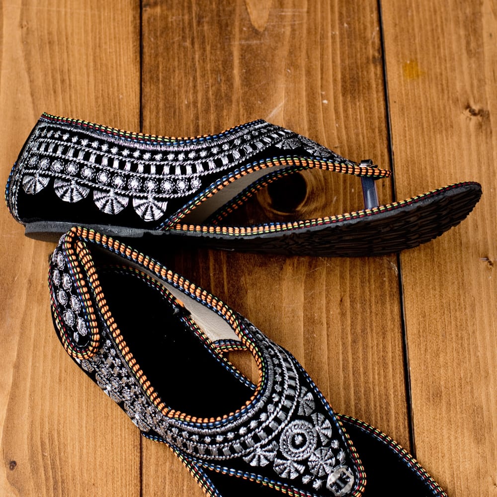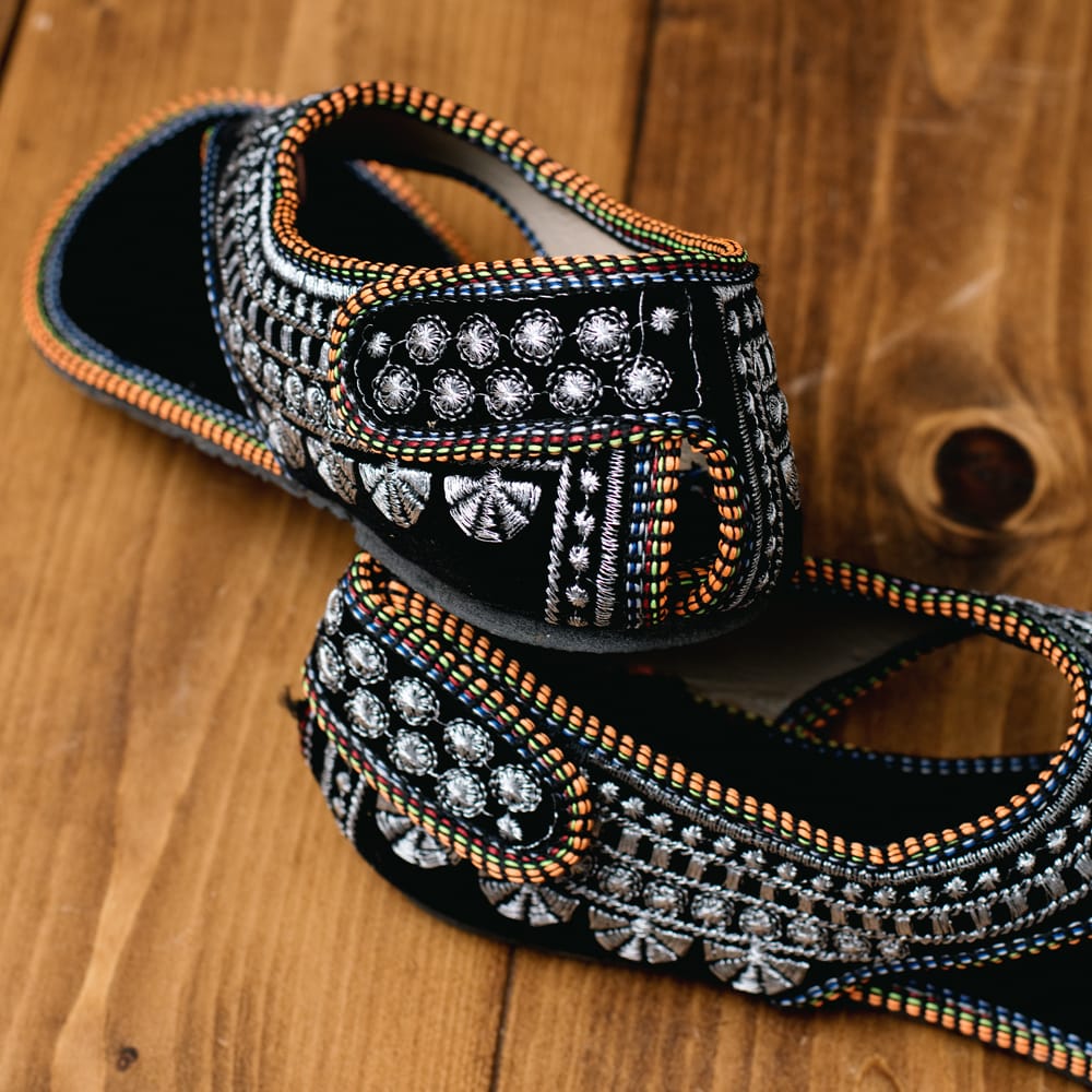 「チャッパル」と呼ばれるまさにインド!という華やかなサンダルがやって来ました。ビーズやスパンコールがキラキラと輝き、ところ狭しと刺繍が施されています。このサンダルでパンジャビドレスやサリーを合わせたら、コーディネートは完璧だね!というインドスタイルです。インドの女性って本当に華やかなデザインが好きなんだな?と改めて実感する一品です。エスニックファッションだけでなく、シンプルにデニムやTシャツに合わせてもかっこよく決まりますよ!■現地のインド人女性向けの商品です