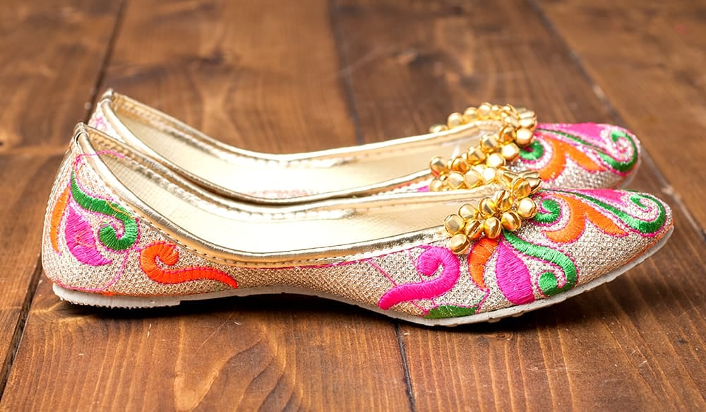 とても丁寧な刺繍が施されていてビックリです。履き心地も良く、薄い生地のソックスを重ねていたので一日中歩いていても疲れませんでした!小さい音ですが、歩くと鈴が鳴ります(小さい粒がです)。気分も上がり、ルンルンしちゃいました〜♪