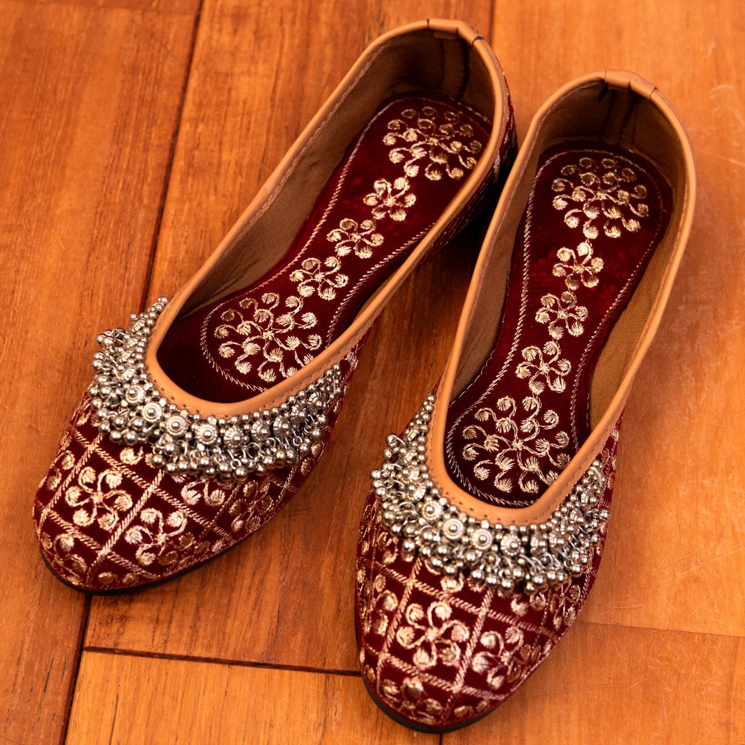 インドらしい装飾と色彩が素敵なフラットシューズです。