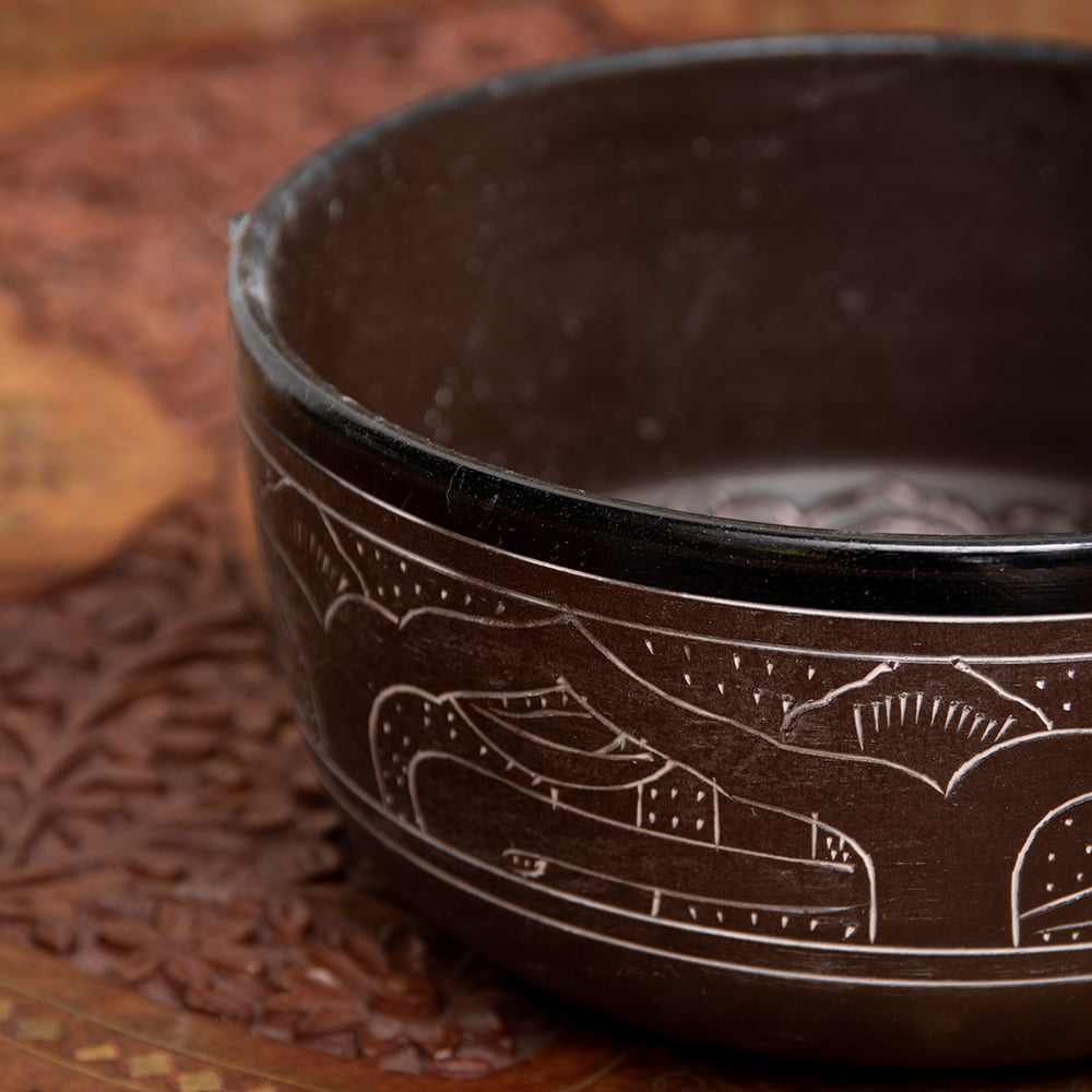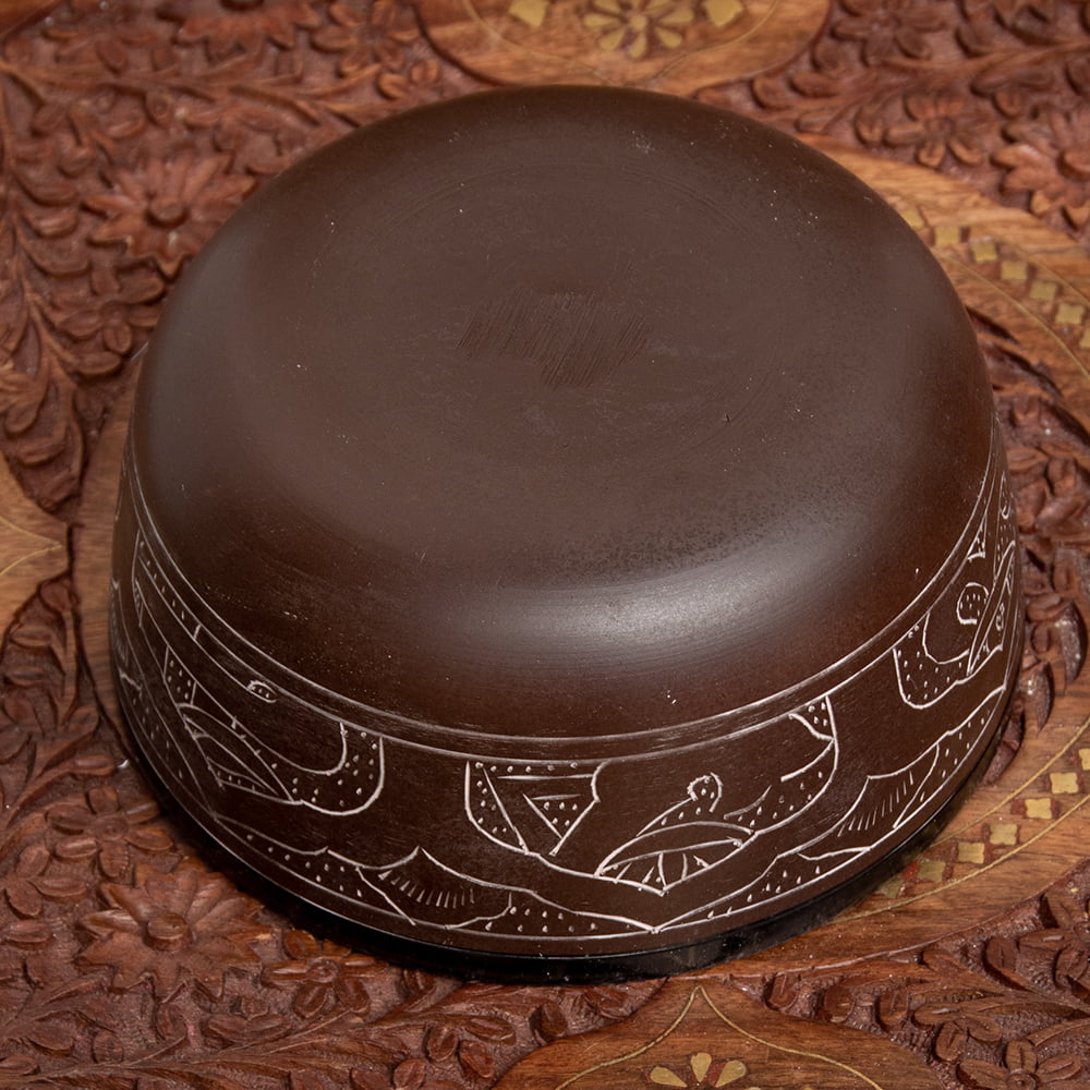 鳴らしやすさに加え特徴的なのが、味わい深い文様です。マントラや、ロータス、ガンター、シュリーヴァスタなどに加え、ブッダなどが美しく彫られています。全ての柄をご覧いただけるよう、写真に収めておりますので、是非御覧くださいませ。音色だけではなく、視覚的にも楽しく癒してくれる一品です。■シンギングボウルの鳴らし方について■