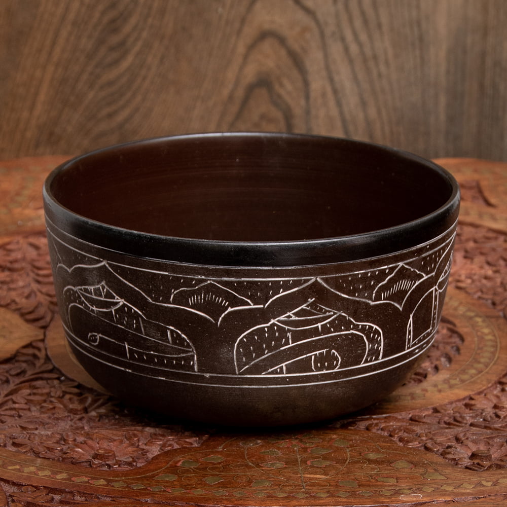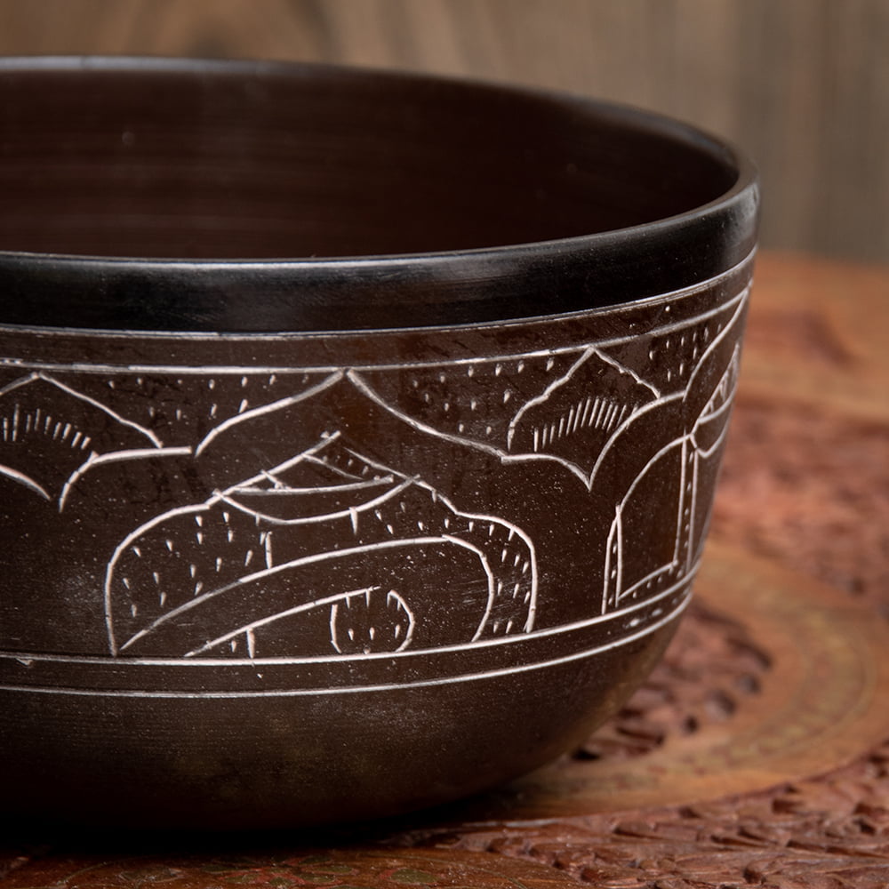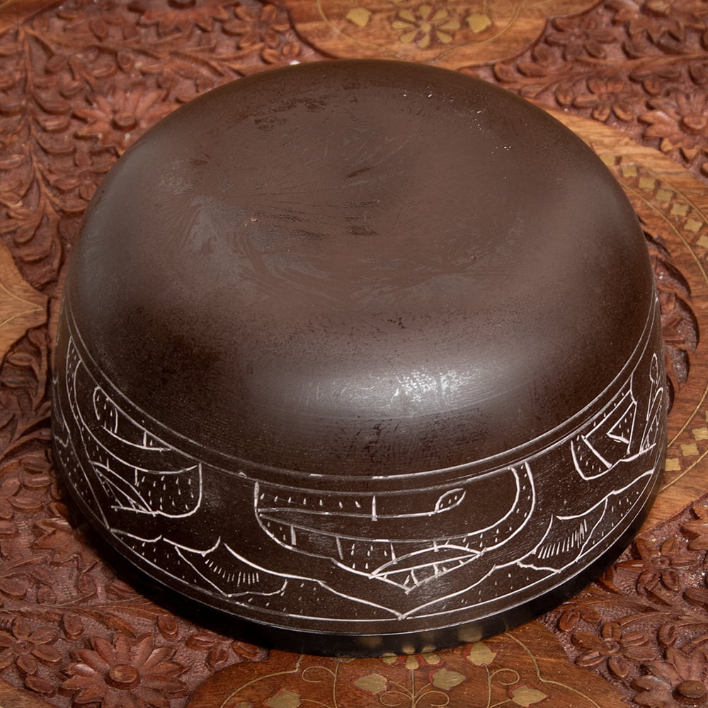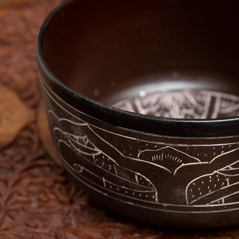 鳴らしやすさに加え特徴的なのが、味わい深い文様です。マントラや、ロータス、ガンター、シュリーヴァスタなどに加え、ブッダなどが美しく彫られています。全ての柄をご覧いただけるよう、写真に収めておりますので、是非御覧くださいませ。音色だけではなく、視覚的にも楽しく癒してくれる一品です。■シンギングボウルの鳴らし方について■