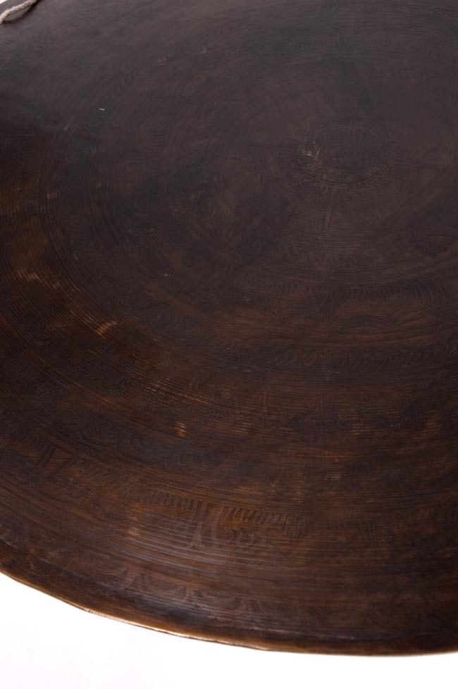 ブラスは古来より寺院で祀られている仏像の素材として使用されている由緒正しい金属で、この銅鑼は音の長さ、音色の良さとも、特筆すべき一品です。