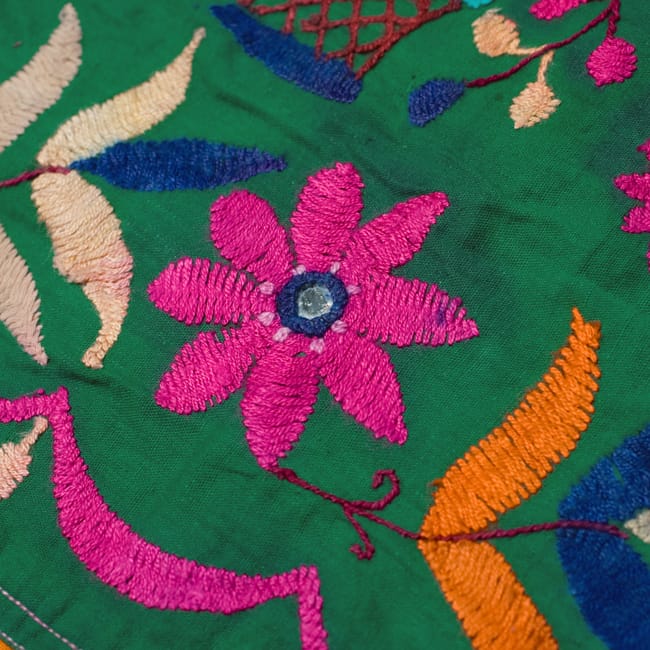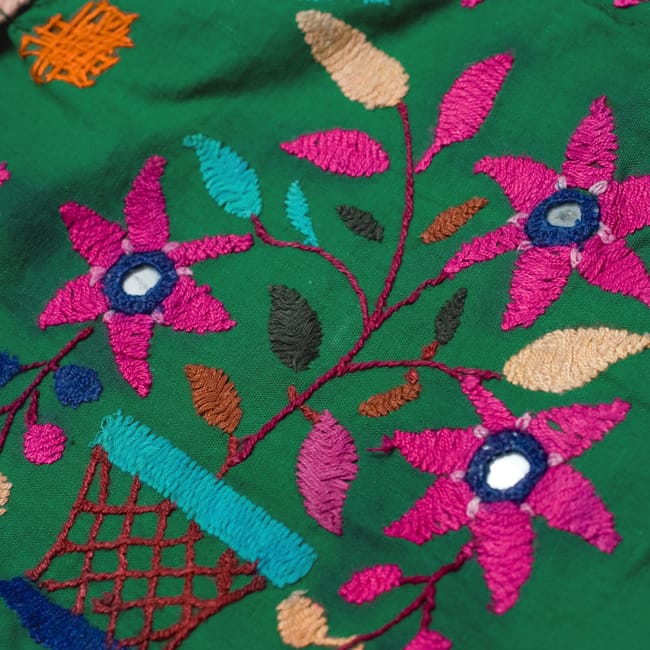 鮮やかな布地にたっぷりの刺繍が目を引くスカートは、グジャラート州のカッチ(Kutch)地方でつくられました。カッチ刺繍のオールドファブリックを使用した日本にはないデザインと、鮮やかな色の組み合わせがとても美しいです。少数民族の女性が一つ一つ丁寧に手刺繍にて作ったスカートは世界で1点だけ。
