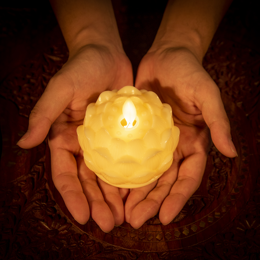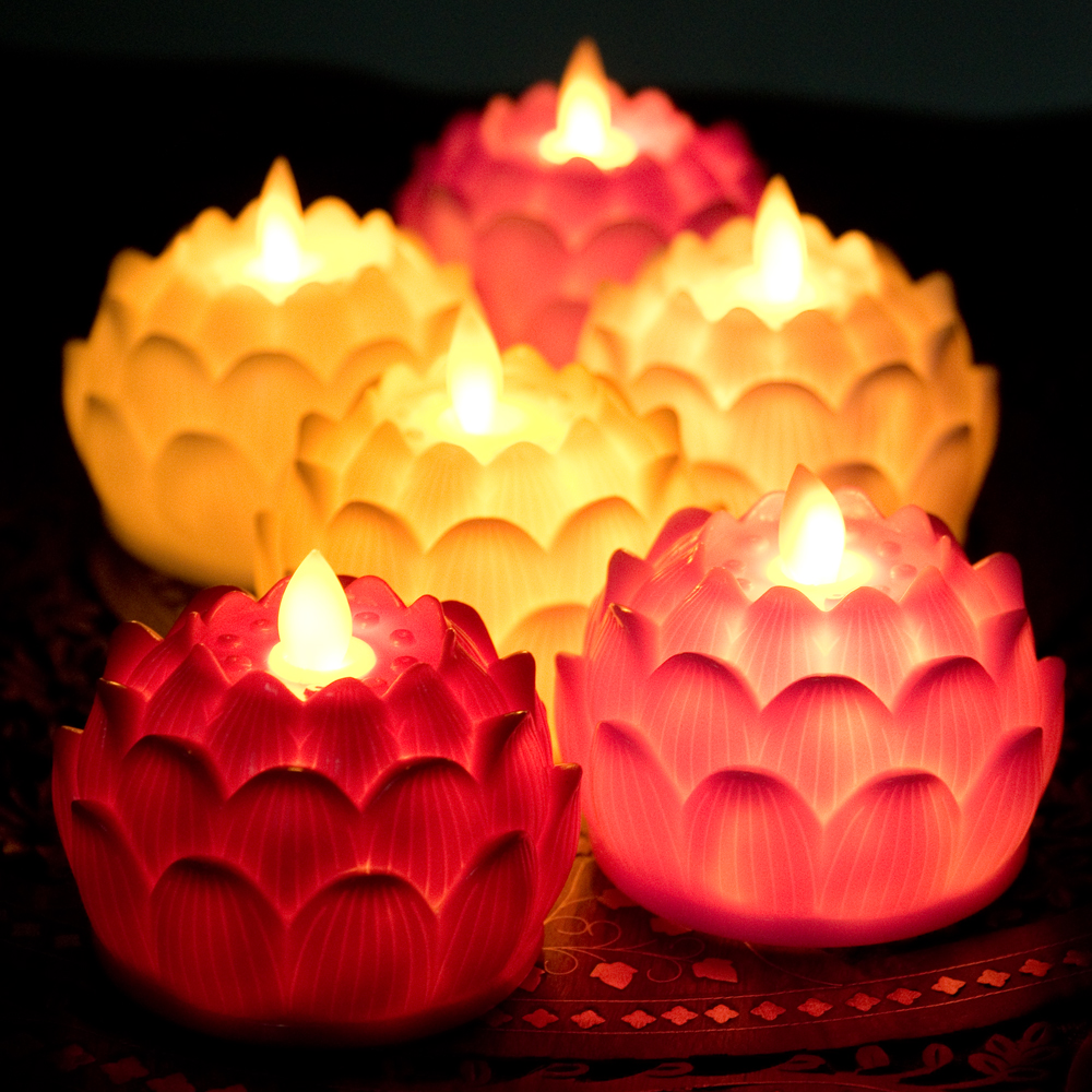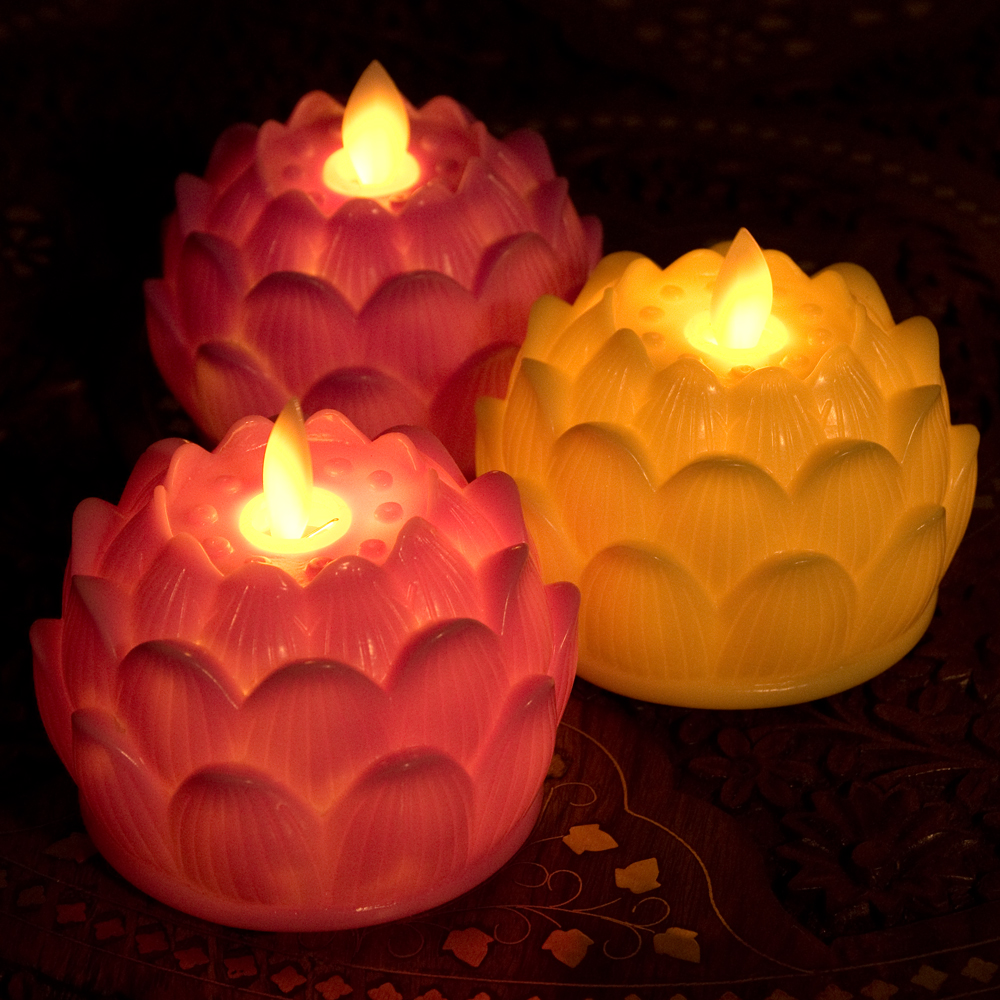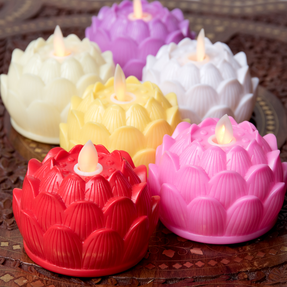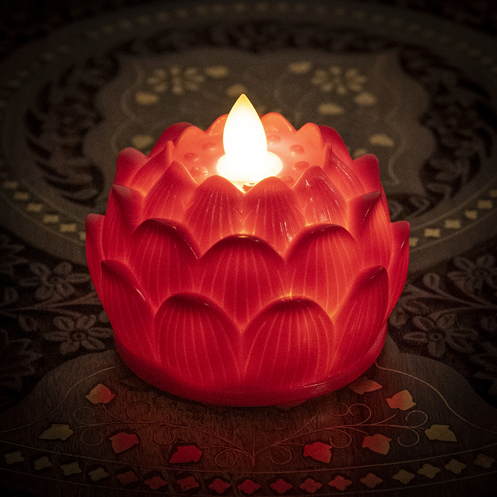 キャンドル型のLEDライトは、蝋燭の形が一般的ですが、こちらは珍しい睡蓮デザイン。 ヒンドゥー教のお祭りの、「光のフェスティバル」と呼ばれるディワリでは、オイルランプを灯す習慣があるのですが、 そんなお祭りで灯すのにも似合いそうな雰囲気です。■さまざまな用途へ