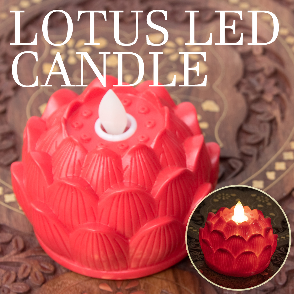 ゆらめく睡蓮の灯り ロウソク風LEDロータスキャンドルライト〔7cm×8cm〕 - レッド