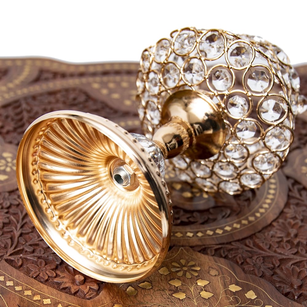 【3個セット】クリスタルガラスのアラビアンキャンドルホルダー - ゴールド【20.5cm×14cm】です。セットでお得になっています♪