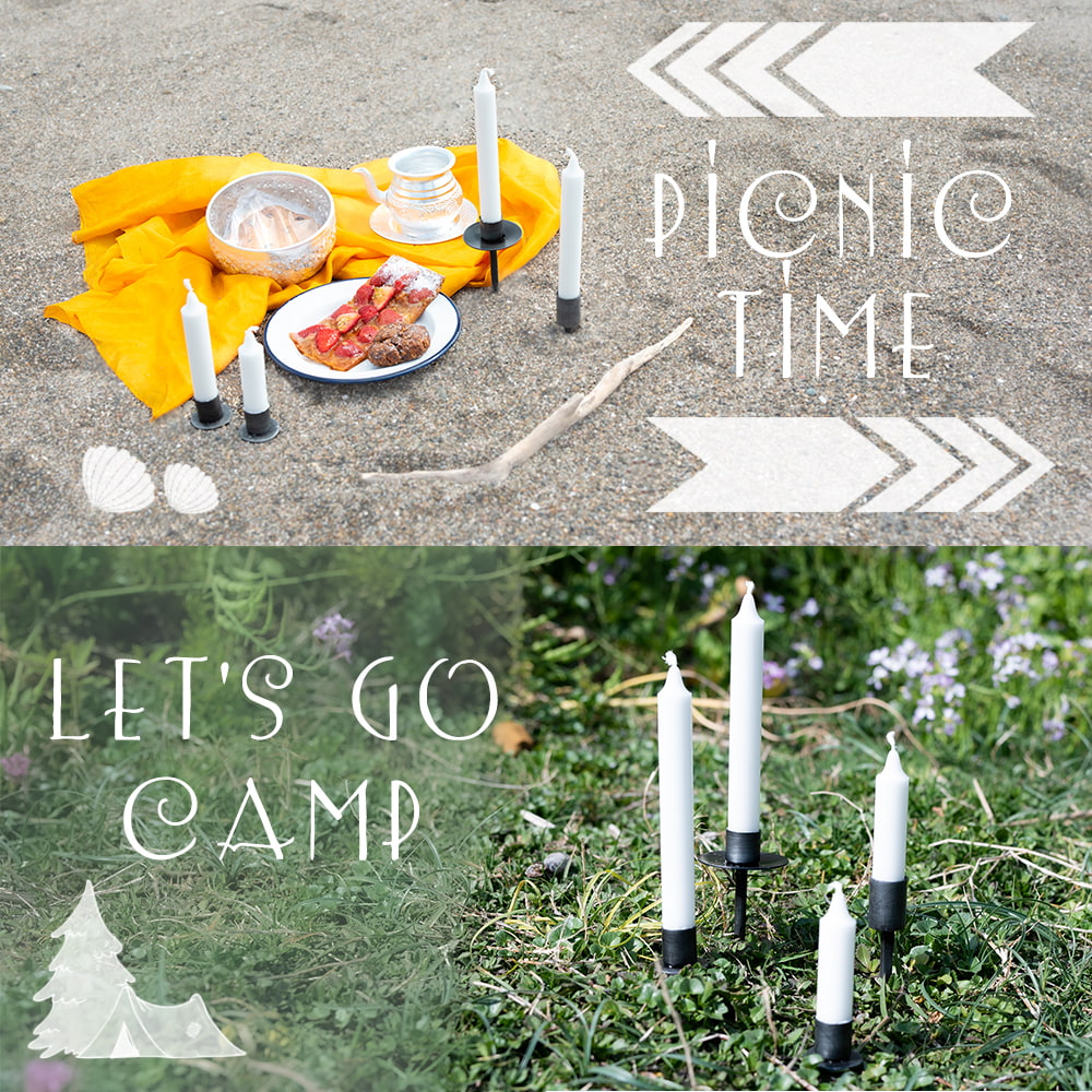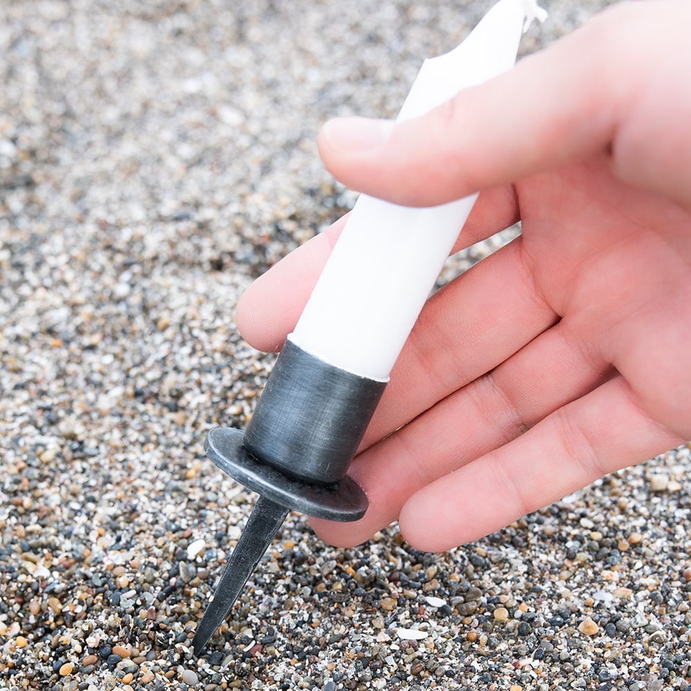 日本ではあまり見ないですが、お庭を彩るガーデンアイテムとして海外では幅広く使われています。土や砂にするっとさして立て、細長いキャンドルを灯して楽しみます。