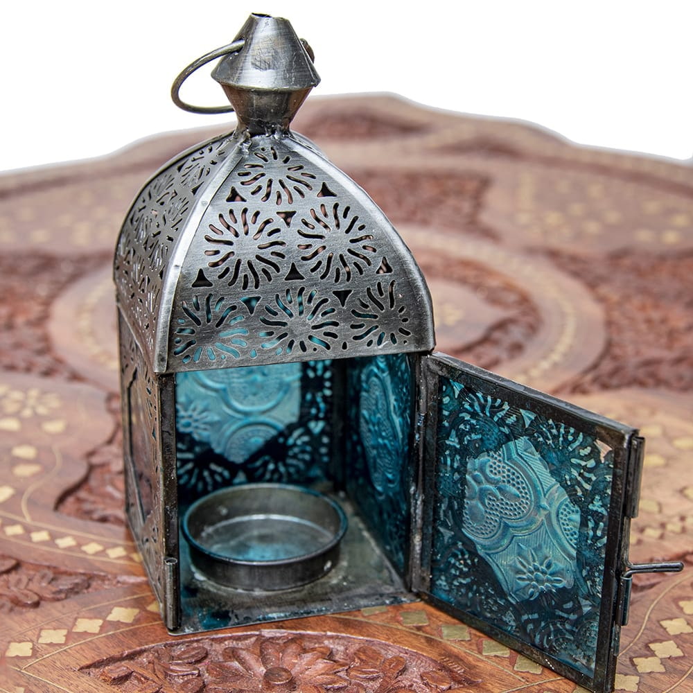【5個セット】モロッコスタイルの透かし彫りLEDキャンドルランタン【ロウソク風LEDキャンドル付き】 - 【ブルー】約14×6.5cm