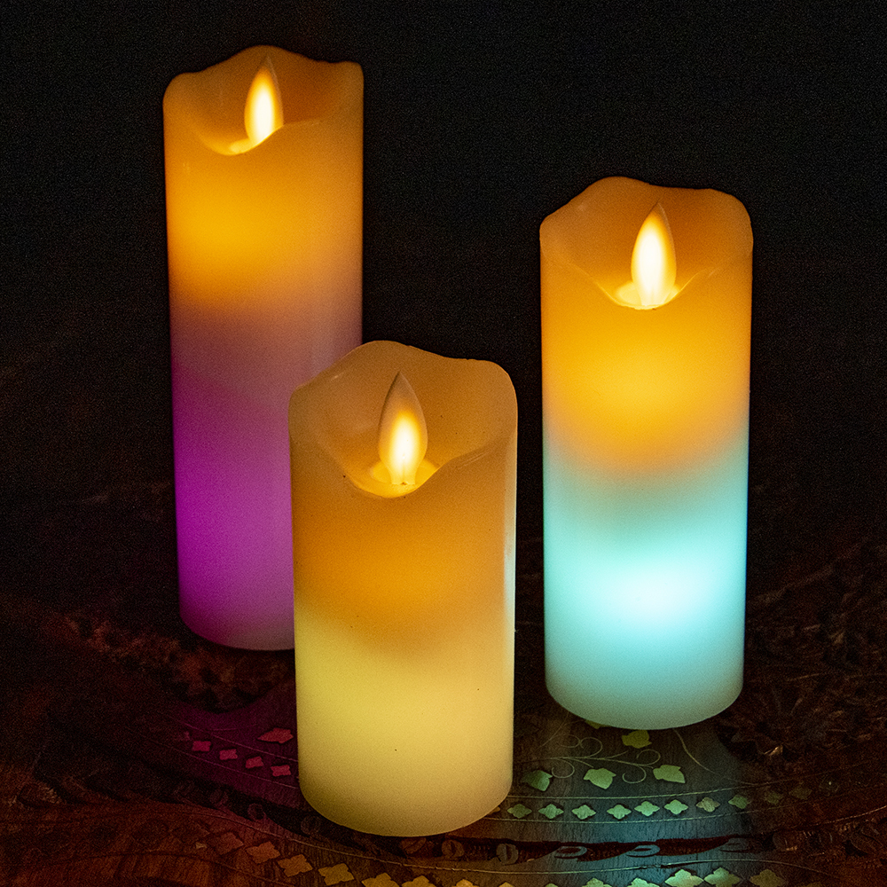 本物のロウで作られた ゆらめく灯火 ロウソク風LEDキャンドルライト レインボー〔5cm×15cm〕 x 5個
