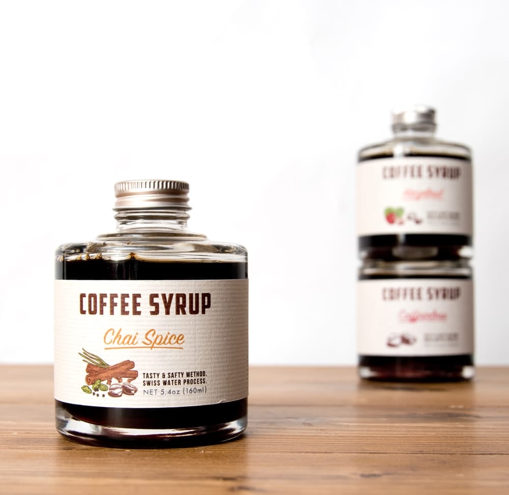 コーヒーシロップ - チャイスパイス 99.9%カフェインを除いた豆を使用しているのでカフェインが気になる方でも飲んでいただけいます。