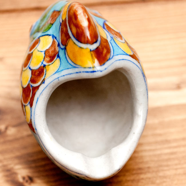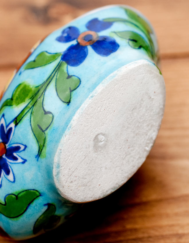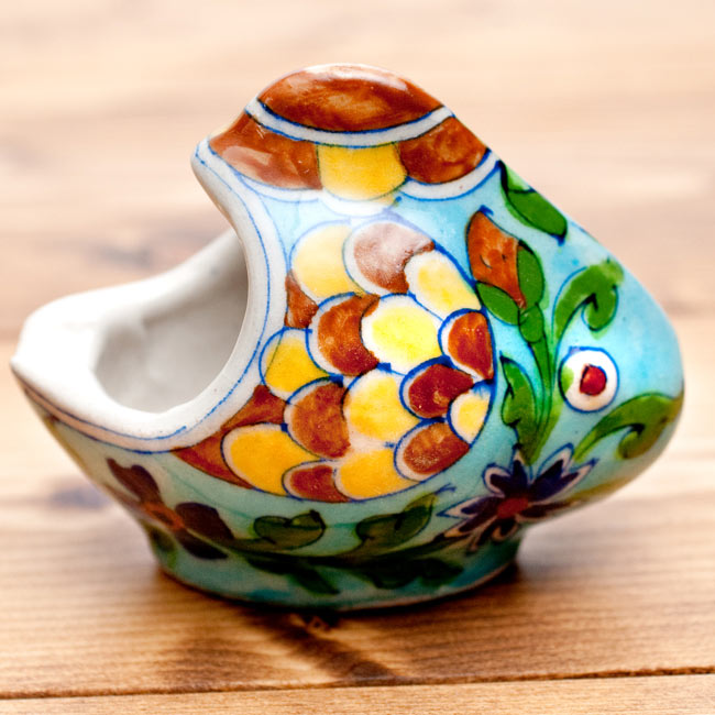 デリーから南西に250kmほど離れたところにある都市・ジャイプールは幅広い手工芸品で有名ですが、その中でも特に知られているのがブルーポッタリー(青陶器)です。ペルシャに由来するとされる独特の深みのある青いカラーリングと、インドらしい可愛いハンドペイントのデザインがふんだんに用いられた雑貨は非常に魅力的なものが数多くあります。■小物入れとしても