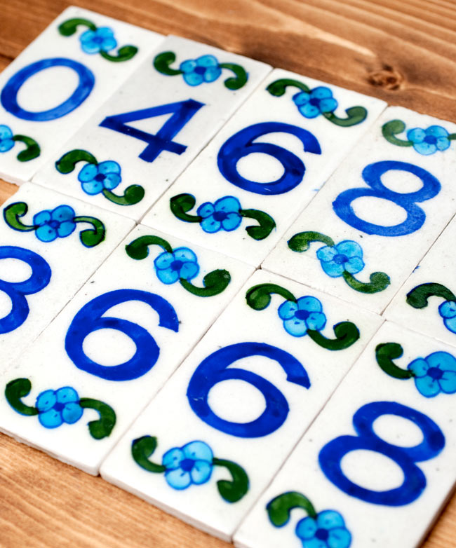 数字がモチーフ。ブルーポッタリーのデコレーションタイルです。