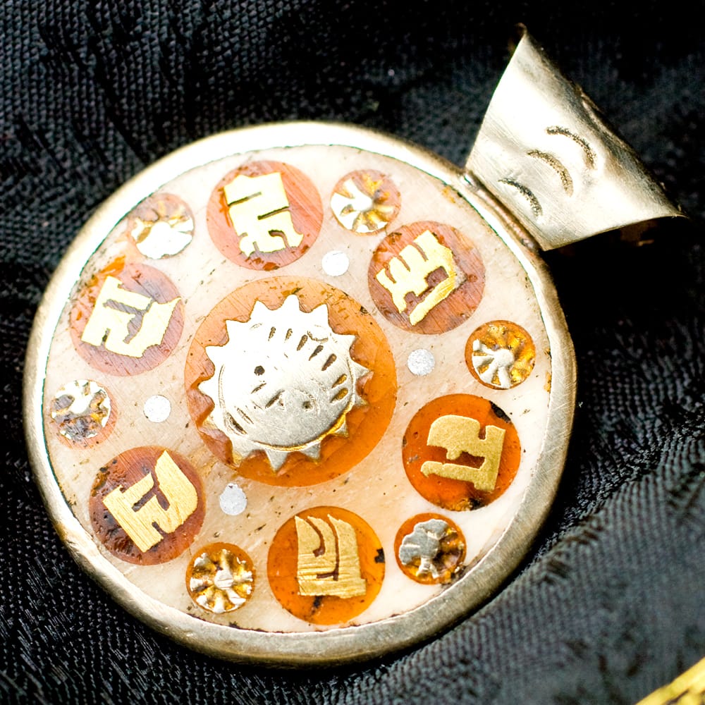 その裏面には太陽が刻まれ、その周囲をマントラが囲んでおり、持っているだけで効果がありそうなペンダントトップになっております。