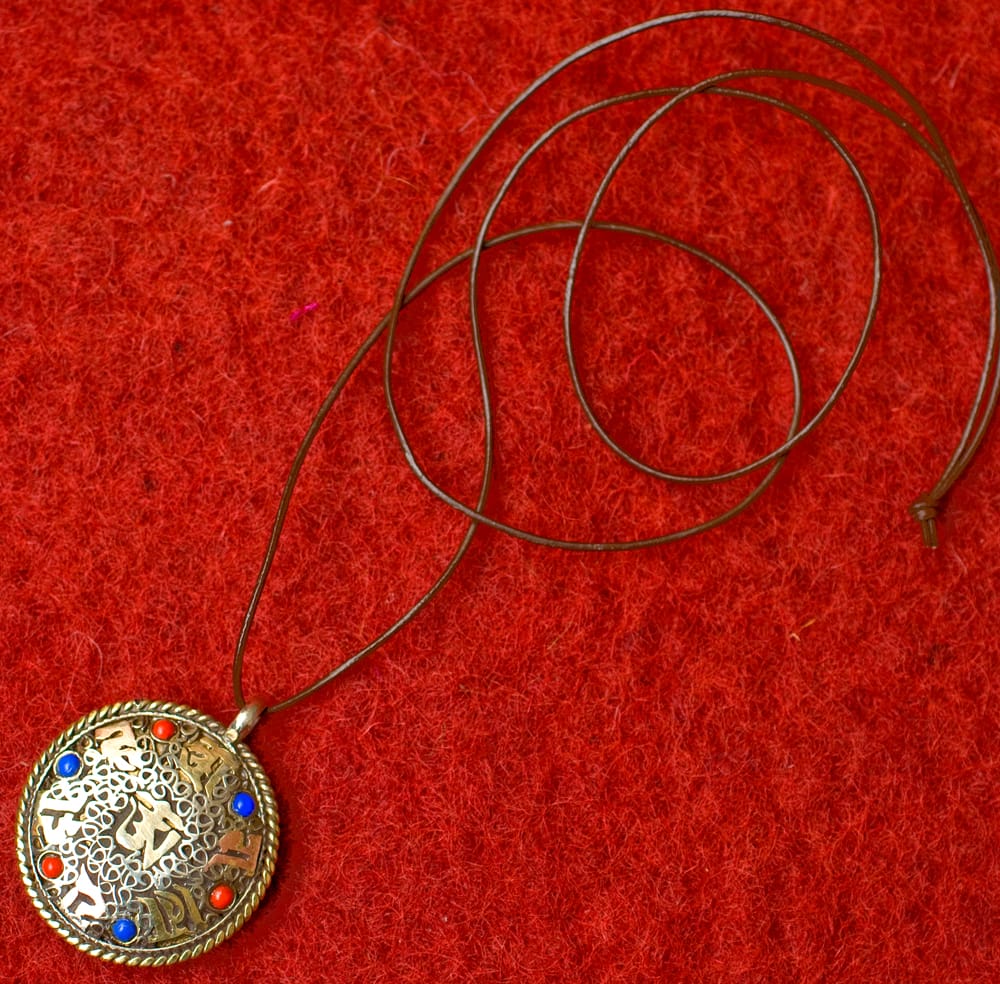 ガネーシャと太陽のペンダントトップの商品写真 5枚目 紐を通すとこのような感じになります(このイメージはID-ACS-258のものになります)