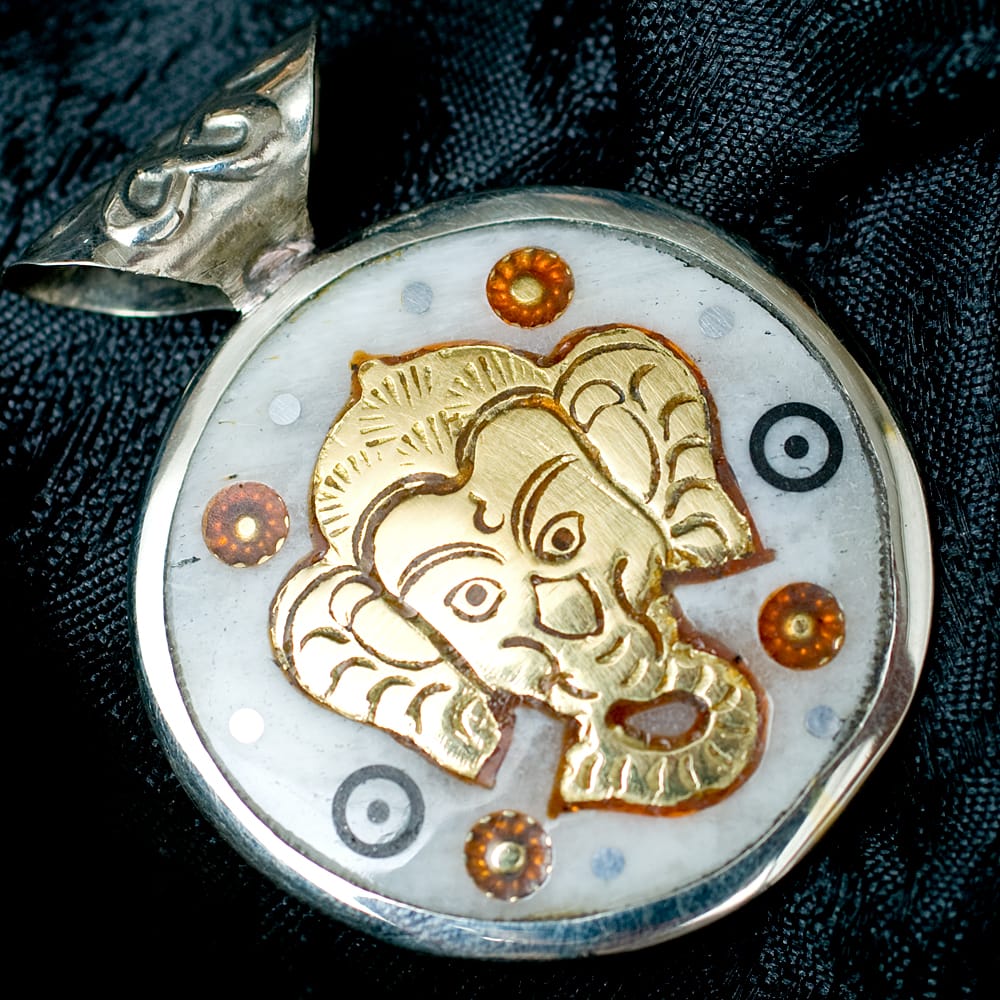 ガネーシャと太陽のペンダントトップの商品写真 1枚目 表面の写真です