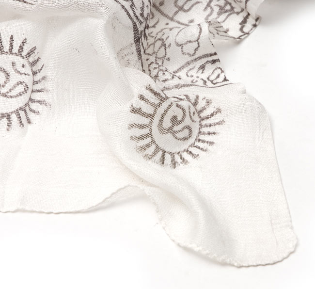梱包をあけて、びっくりしました。とても綺麗な黒字に白、画像で見るよりもっと素敵です。丁寧な仕事で作られていると感じました。こまかい模様もいい加減なところがなく、端の処理もきちんとされていました。生地も肌に優しく、買ってすぐにヘビロテ決定。ちょっとしたスカーフや、口のあいたバッグの目隠しに使っていますが、デザインのよさ、やわらかさ、軽さ、どれをとっても満足です。