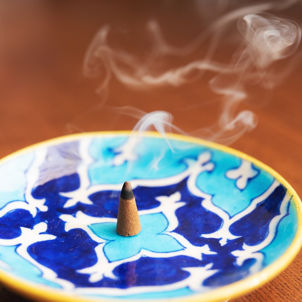 火をつけてみたところです。お香たてや、陶器のお皿の上などでお楽しみいただけます。