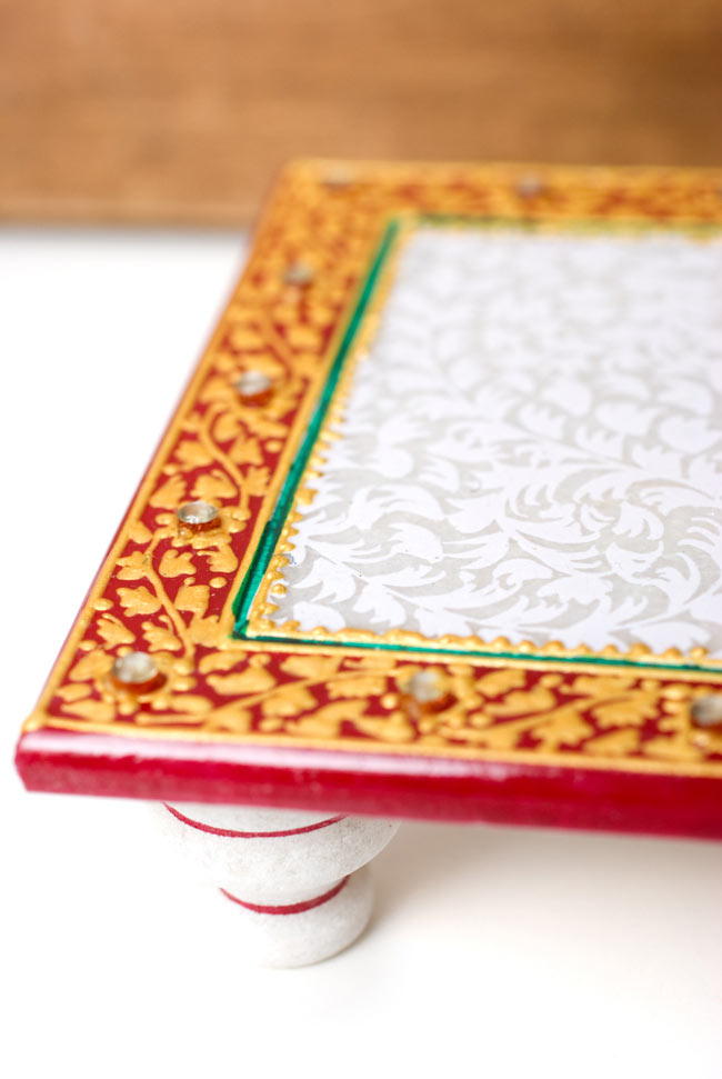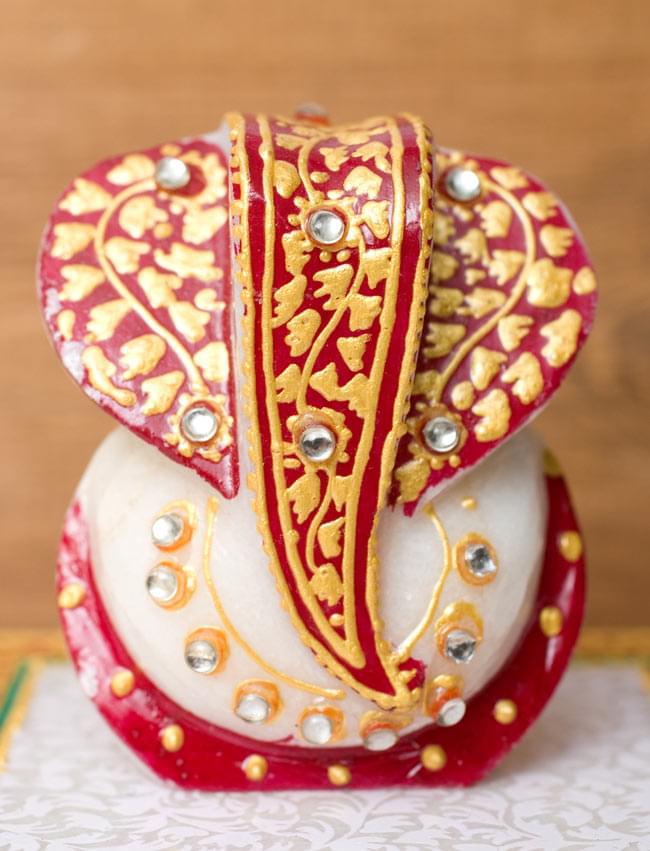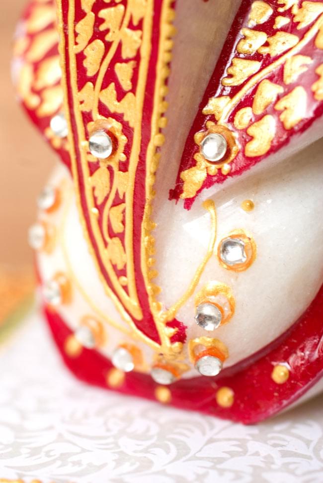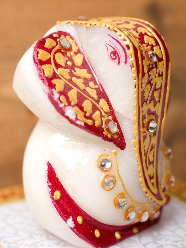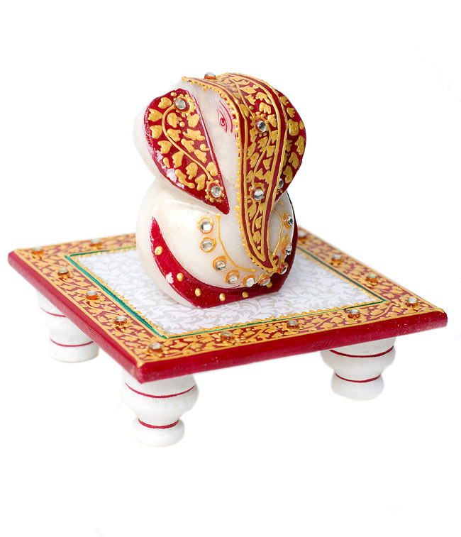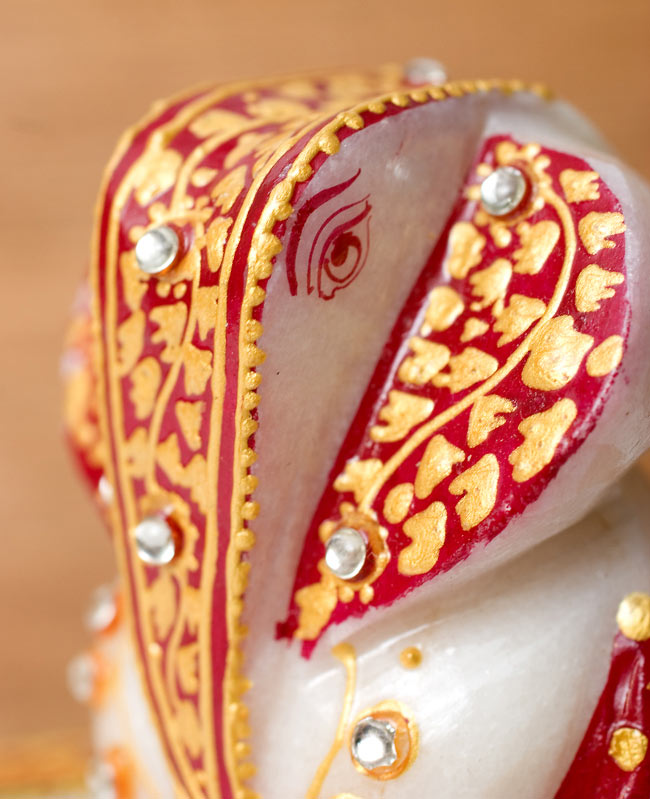 タージマハルと同じ素材、マーブルストーンを削りだして彫刻し、鮮やかな彩色を施したガネーシャです。台座にも美しい紋様が与えられ、眺めているだけでもうっとりとしたひとときをお過ごし頂けます。■金運と商売の神様