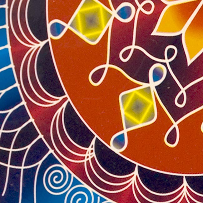 ただ、これだけ大きいと、インドから輸送するにあたって、どうしても折り畳んで日本にやってきます。そのため、ステッカー全体が波打ってしまっておりますので、あらかじめご了承いただけると幸いです。
