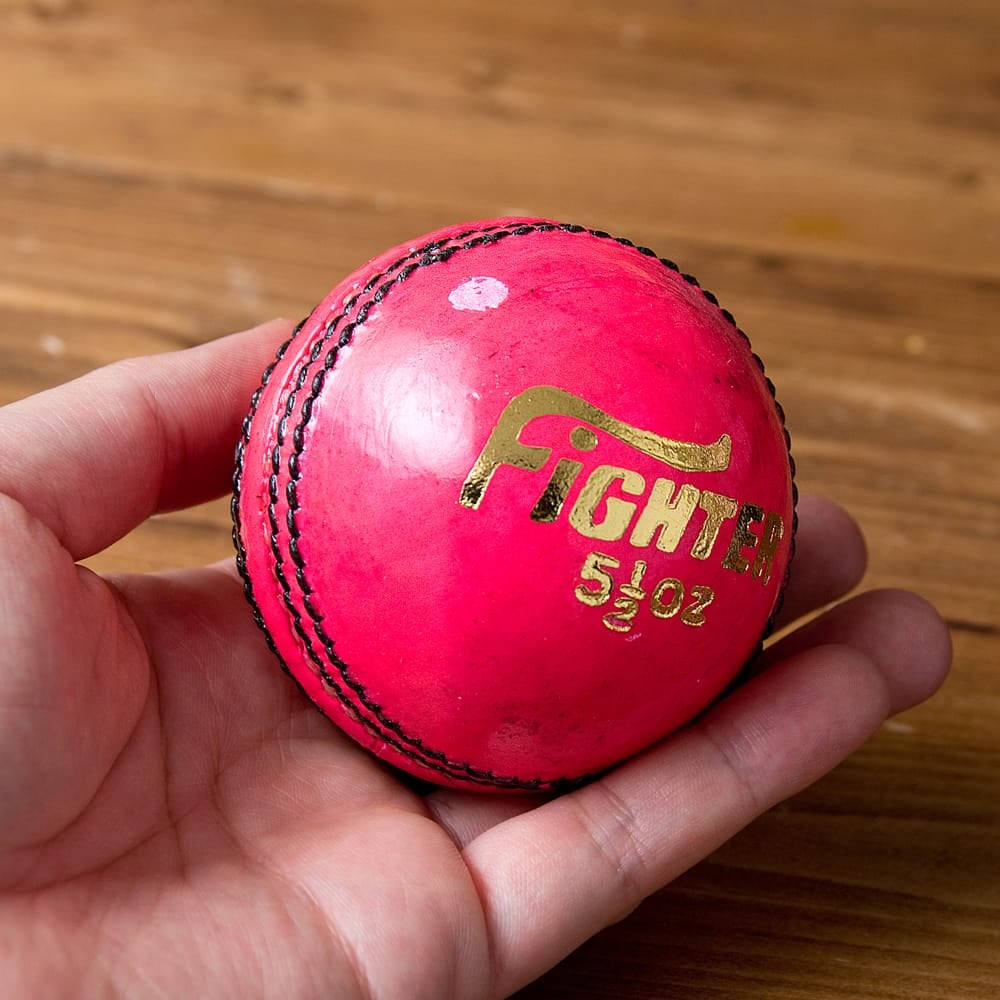 このボールはクリケットで使われているボールです。硬さは野球の硬球と同じくらいあります。光沢があり、金色のロゴが輝いて見えます。デザインが良いので、インテリアとしてもお使いいただけるかもしれませんね。