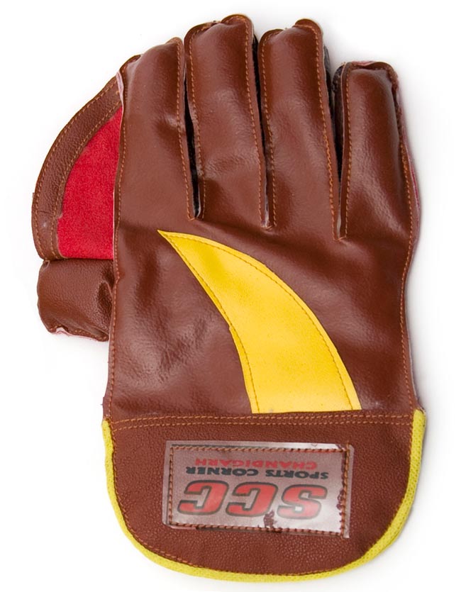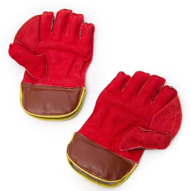 このグラブはウィケットキーパー(野球で例えるとキャッチャー)用のグラブです。硬いクリケットのボールを受け止める用のグラブだけあって、分厚く作られています。突き指防止のためか、指先も中で硬いゴムのようなものと、綿のようなものに防護されています。この部分は柔らかいので、グラブの外から握ったりすることで太さの調整が可能です。