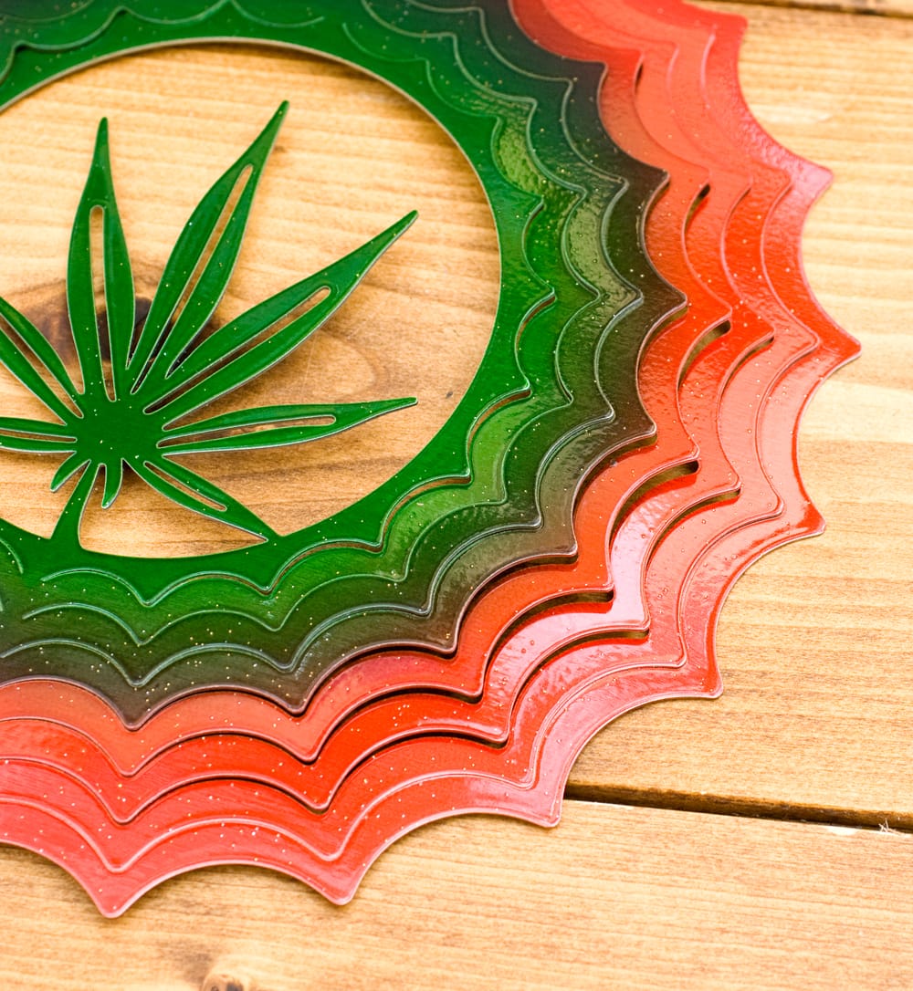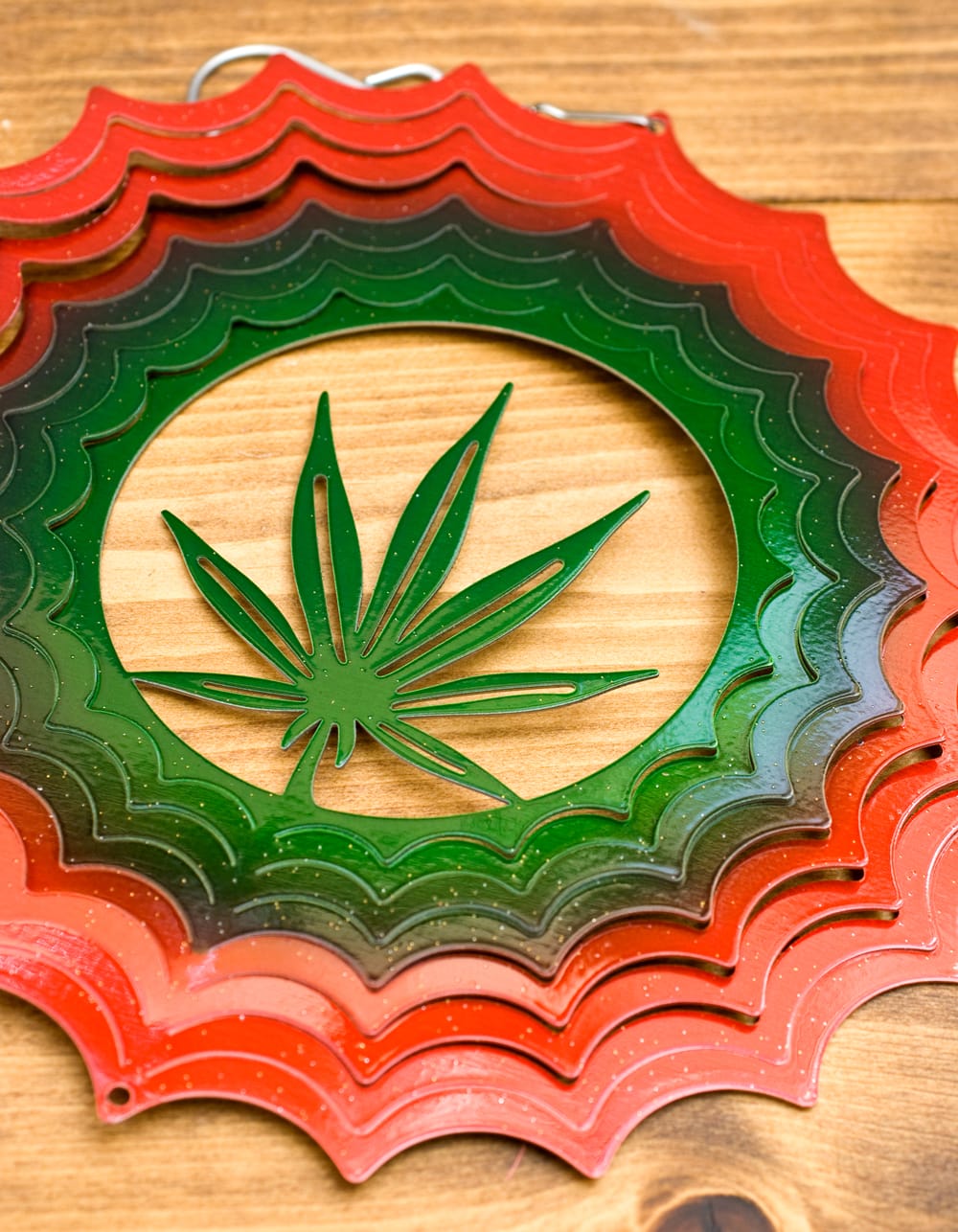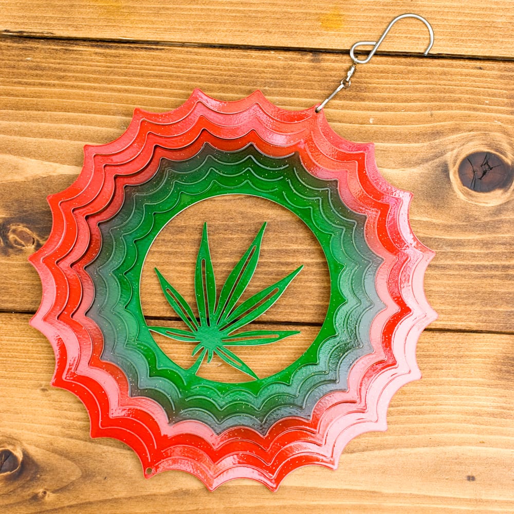 カラフルコスモスピナー 太陽で輝き風で動くモビール-麻の葉(8インチ)