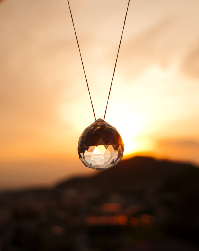 この美しいクリスタルガラスは「サンキャッチャー」と呼ばれ、太陽の光をうけてキラキラときらめき、中を通過した光はたくさんの細かな虹となって部屋のなかに散らばります。欧米圏では「レインボウメーカー」の名前でも知られ、お守りとして愛用する人もいます。虹は風水において極めて大きな吉兆であり、幸運を求める人に愛されるのもうなずける大変美しいアイテムです。