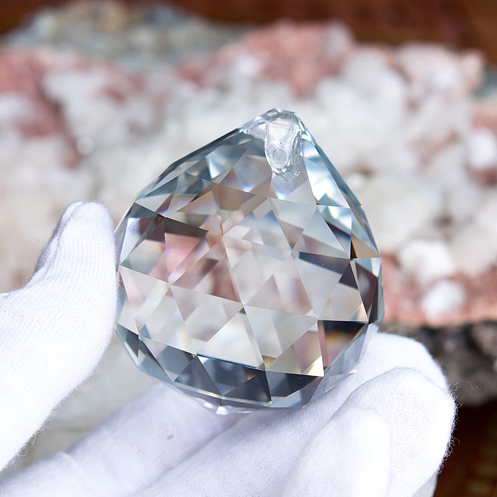 この美しいクリスタルガラスは「サンキャッチャー」と呼ばれ、太陽の光をうけてキラキラときらめき、中を通過した光はたくさんの細かな虹となって部屋のなかに散らばります。欧米圏では「レインボウメーカー」の名前でも知られ、お守りとして愛用する人もいます。虹は風水において極めて大きな吉兆であり、幸運を求める人に愛されるのもうなずける大変美しいアイテムです。