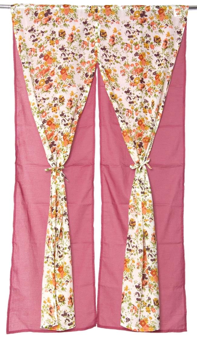 【裏地付き】インドのコットンのれん【花柄】 - アプリコット&黄色系の類似商品