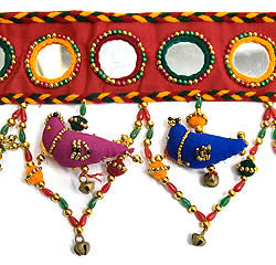 グジャラートの飾りのれん-鳥と丸鏡