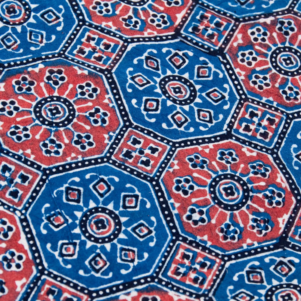 南インドの木版染めアジュラック布ハンカチ ブルー×レッド