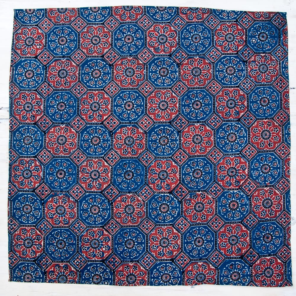 南インドの木版染めアジュラック布ハンカチ ブルー×レッドの同一カテゴリ商品